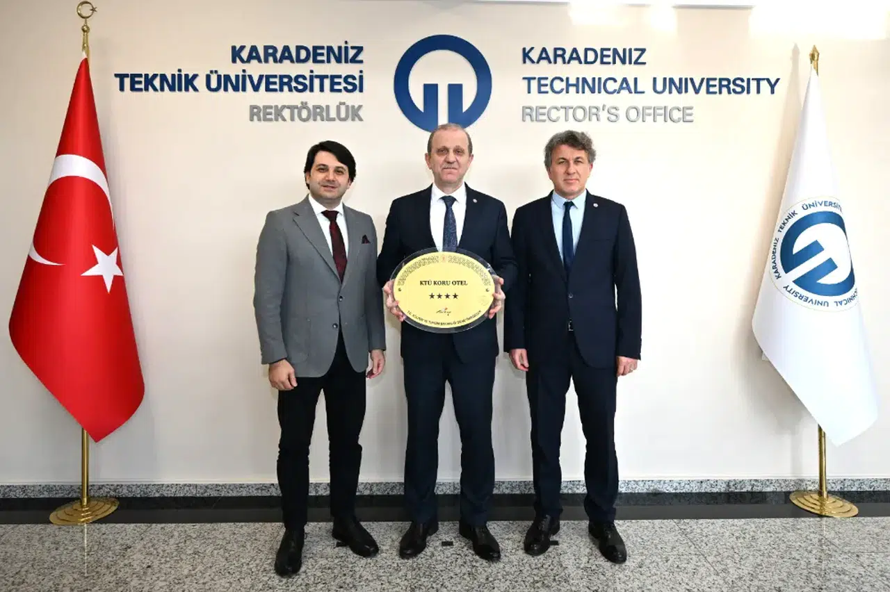 Karadeniz Teknik Üniversitesi (KTÜ) bünyesindeki Koru Otel, T.C. Kültür ve Turizm Bakanlığı tarafından “4 Yıldızlı Otel” plaketiyle ödüllendirildi. Plaket takdim töreni, KTÜ Rektörlük makamında Rektör Prof. Dr. Hamdullah Çuvalcı, Rektör Yardımcısı Prof. Dr. Ali Temiz ve Koru Otel Genel Müdürü Öğr. Gör. Dr. Yakup Heyal’in katılımıyla düzenlendi.