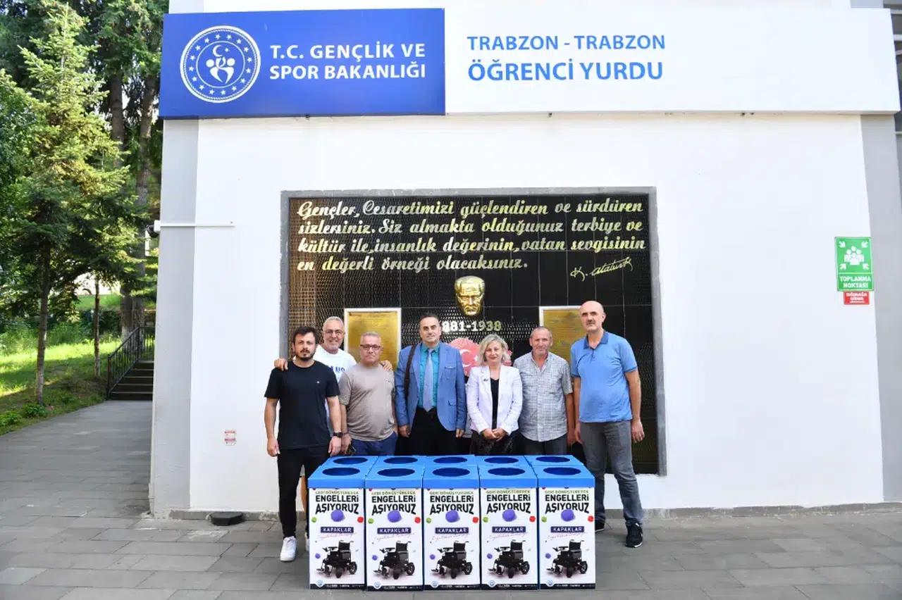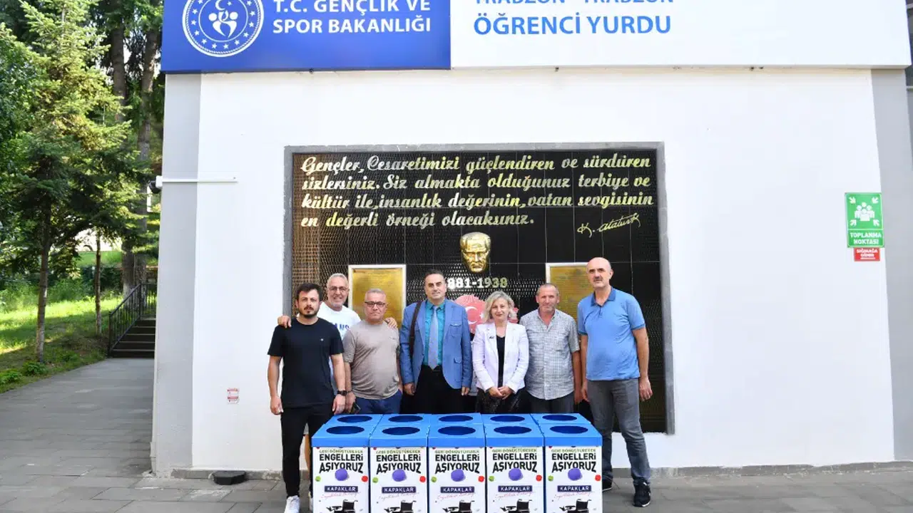 Ortahisar Belediye Başkanı Ahmet Kaya'nın başlattığı "Geri Dönüştürerek Engelleri Aşıyoruz" kampanyası, Trabzon'da büyük bir destek buluyor. Kampanya kapsamında Trabzon Yurt Müdürlüğü personeli tarafından toplanan 10 çuval mavi kapak, Ortahisar Belediyesi Etüd Proje Müdürü Mustafa Özer İskender tarafından teslim alındı.