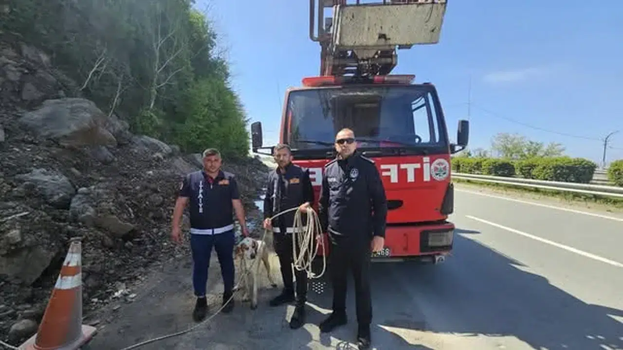İhbar üzerine hızla olay yerine gelen ekipler, köpeğin yaklaşık 50 metre yüksekliğindeki heyelanlı alanda mahsur kaldığını tespit etti. Güvenlik önlemleri alınarak halat yardımıyla başlatılan kurtarma çalışması, kısa sürede başarıyla sonuçlandı. Ekipler, köpeği zarar görmeden bulunduğu yerden indirerek güvenli bölgeye ulaştırdı. Veteriner kontrolünden geçirilen köpek sahibine teslim edidi.