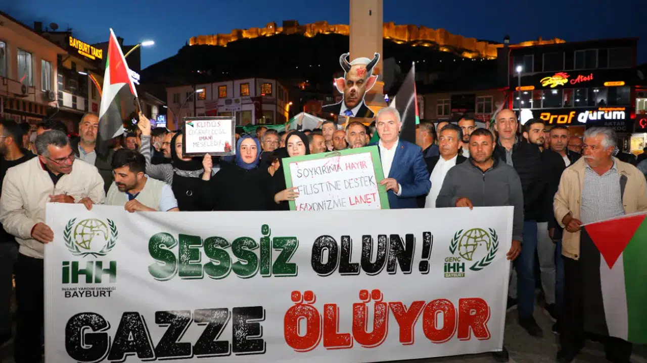 Bayburt Belediye Başkanı Mete Memiş, İnsan Hak ve Hürriyetleri İnsani Yardım Vakfı (İHH) Bayburt Şubesi'nin öncülüğünde düzenlenen destek yürüyüşüne katıldı.