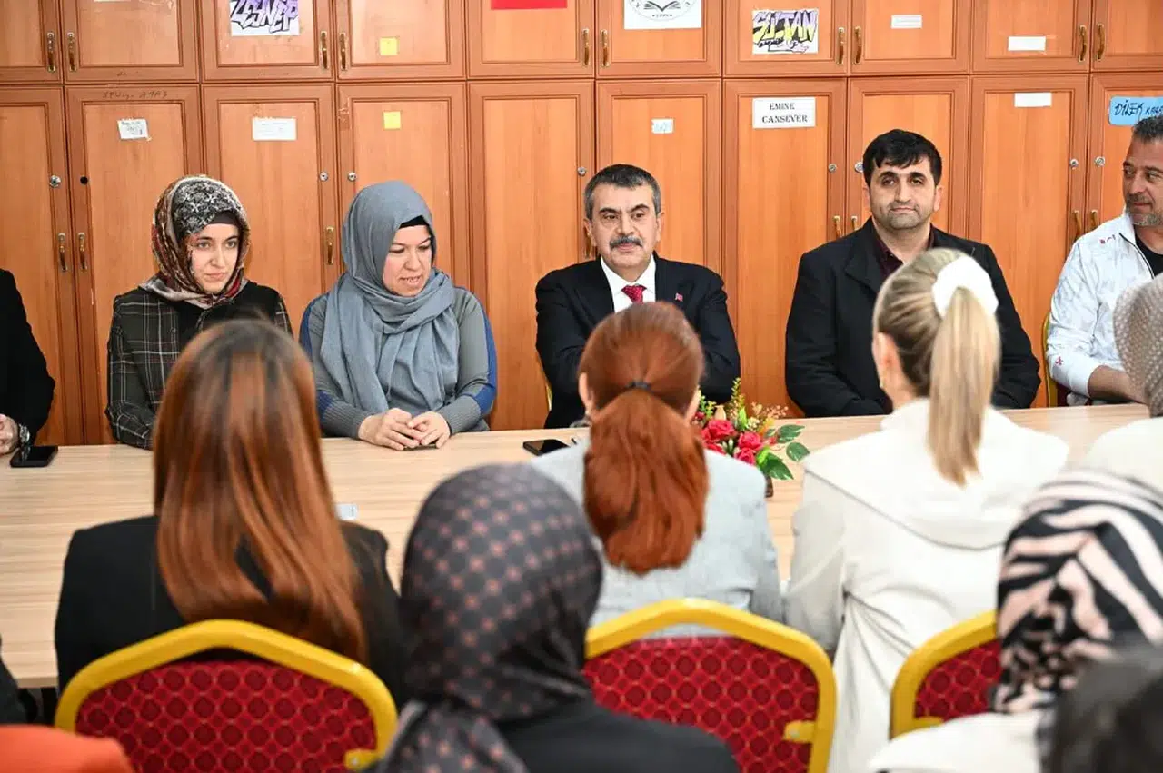 Ziyaretin ilk bölümünde Bakan Tekin, okulun öğretmenleriyle bir araya gelerek sohbet etti ve eğitim süreciyle ilgili görüş alışverişinde bulundu. Sohbetin ardından, Matematik Öğretmeni Nur Betül Sümbüllü’ye doğum günü dolayısıyla sürpriz bir kutlama yapıldı. Bakan Tekin, öğretmene tebrik belgesi vererek, onun eğitime olan katkılarını takdir etti.