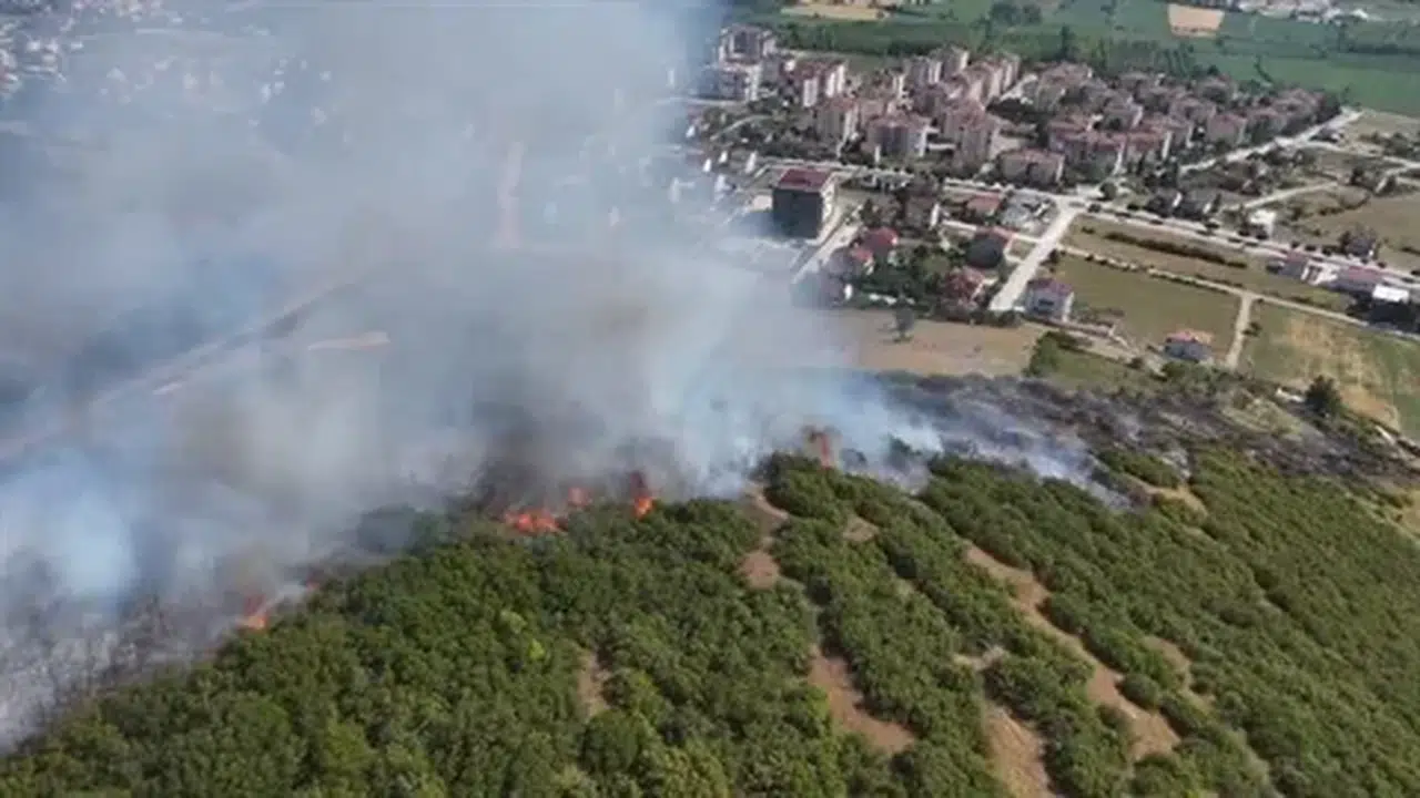 TOKAT’ın Niksar ilçesinde makilik alanda çıkan yangında 15 dönüm alan zarar gördü. Yangın anı dron ile görüntülendi.