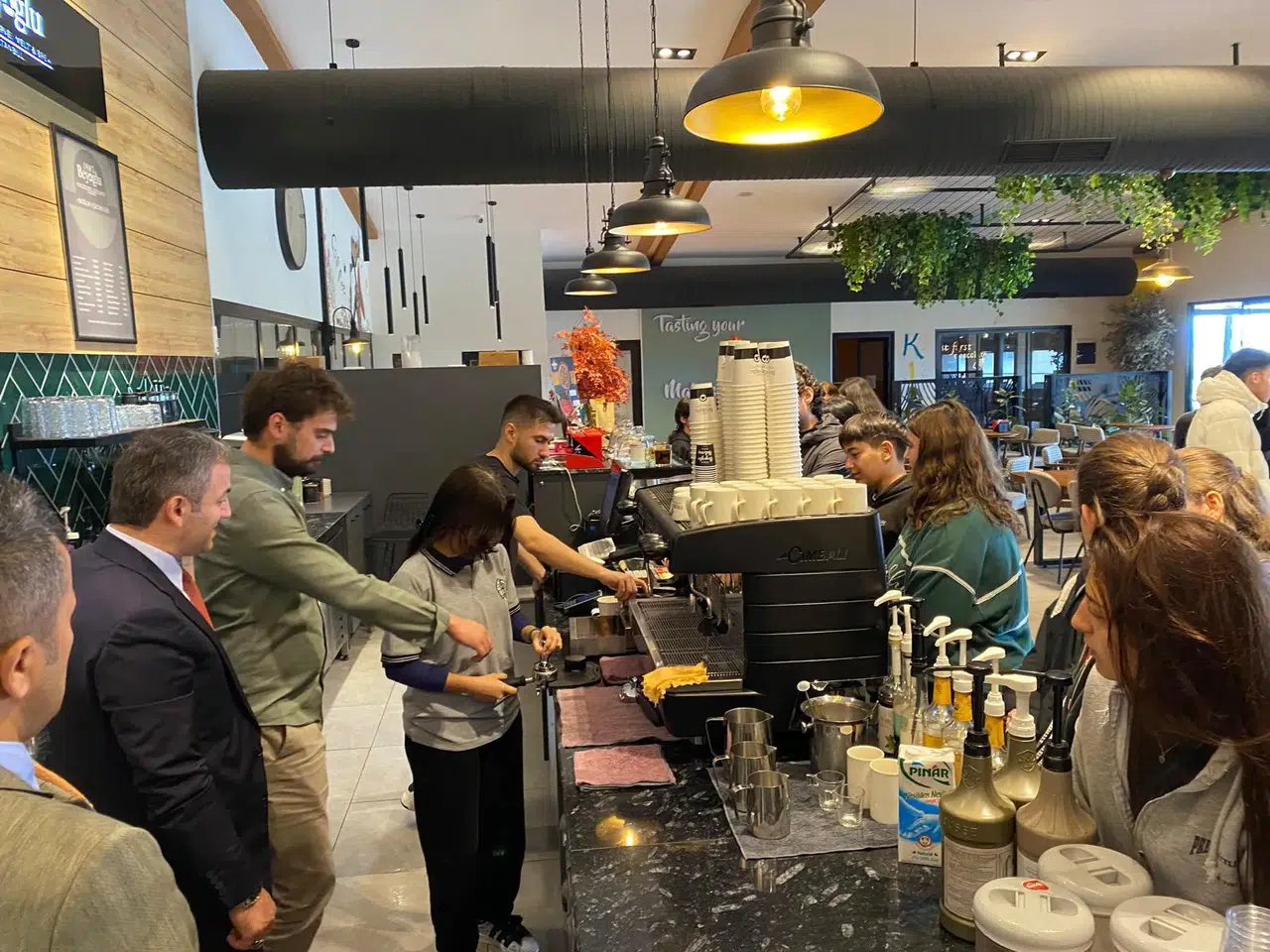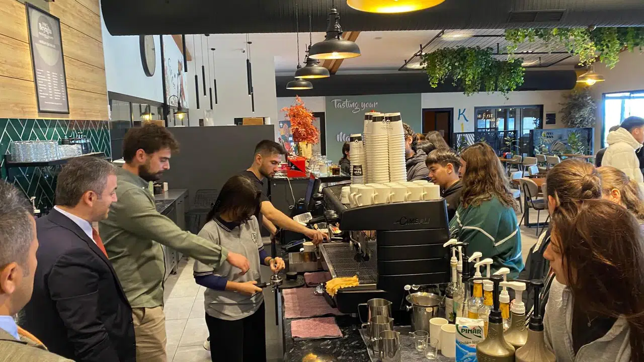 Beşikdüzü İlçe Milli Eğitim Müdürü Sayın Ziya Durmuş da uygulama gezisi sırasında öğrencilerimizi ziyaret ederek kahve hazırlama sürecine eşlik etti ve gençlere destek verdi.