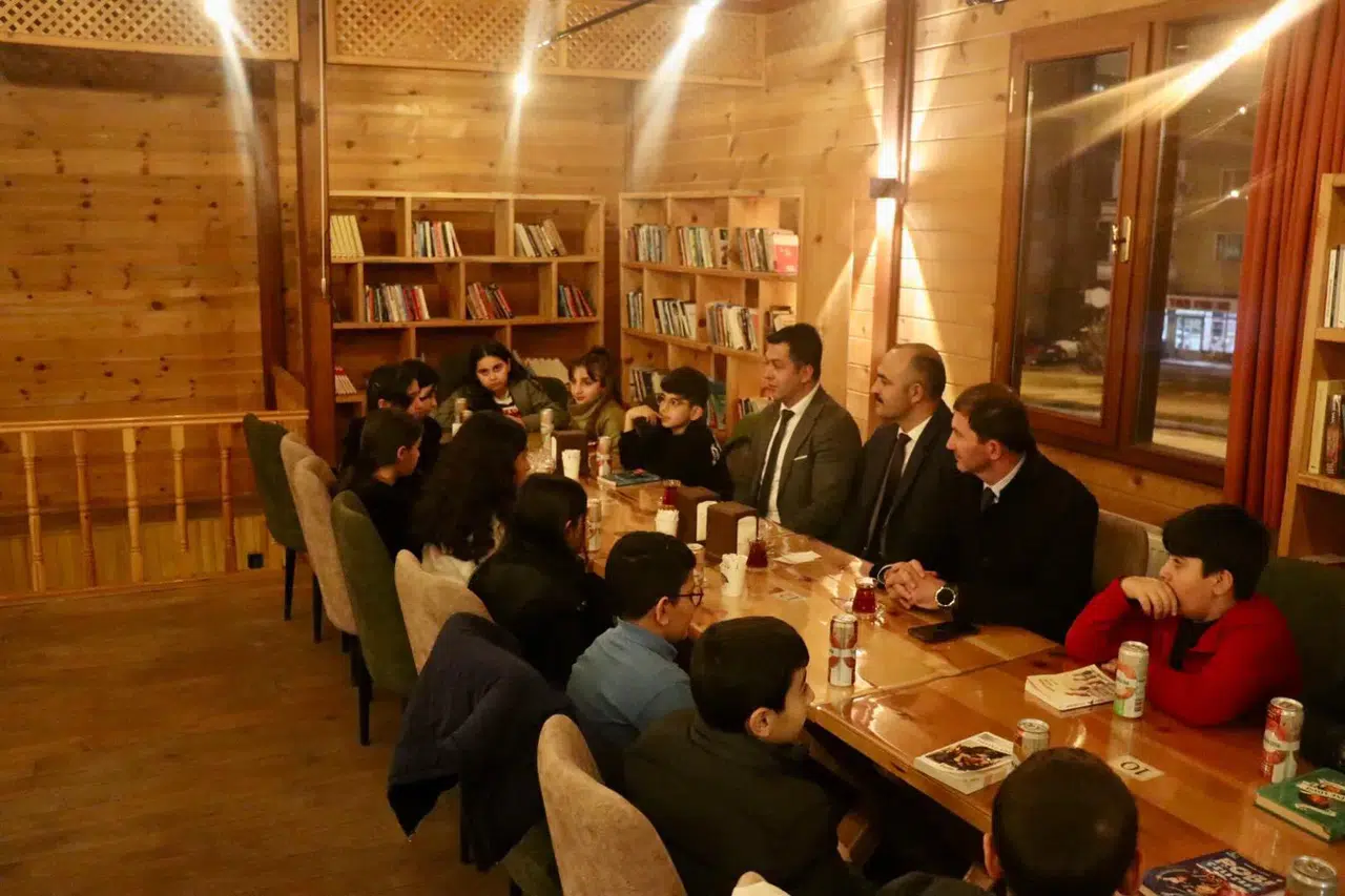 Ardanuç Kaymakamı Alparslan Sözen ve Belediye Başkanı Emrah Yılmaz, Cumhuriyet Ortaokulu Müdürü Lokman Çiftçi ile birlikte, Cumhuriyet Ortaokulu 5. sınıflar arasında en çok kitap okuyan öğrencilerle bir araya geldi.