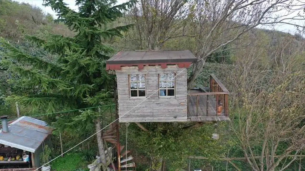 Aytekin, babası İsmail ve dedesi Adnan Çandır ile evlerinin bahçesindeki meşe ağacına, yerden 6 metre yükseklikte, yaklaşık 17 metrekarelik ahşap ev yaptı.