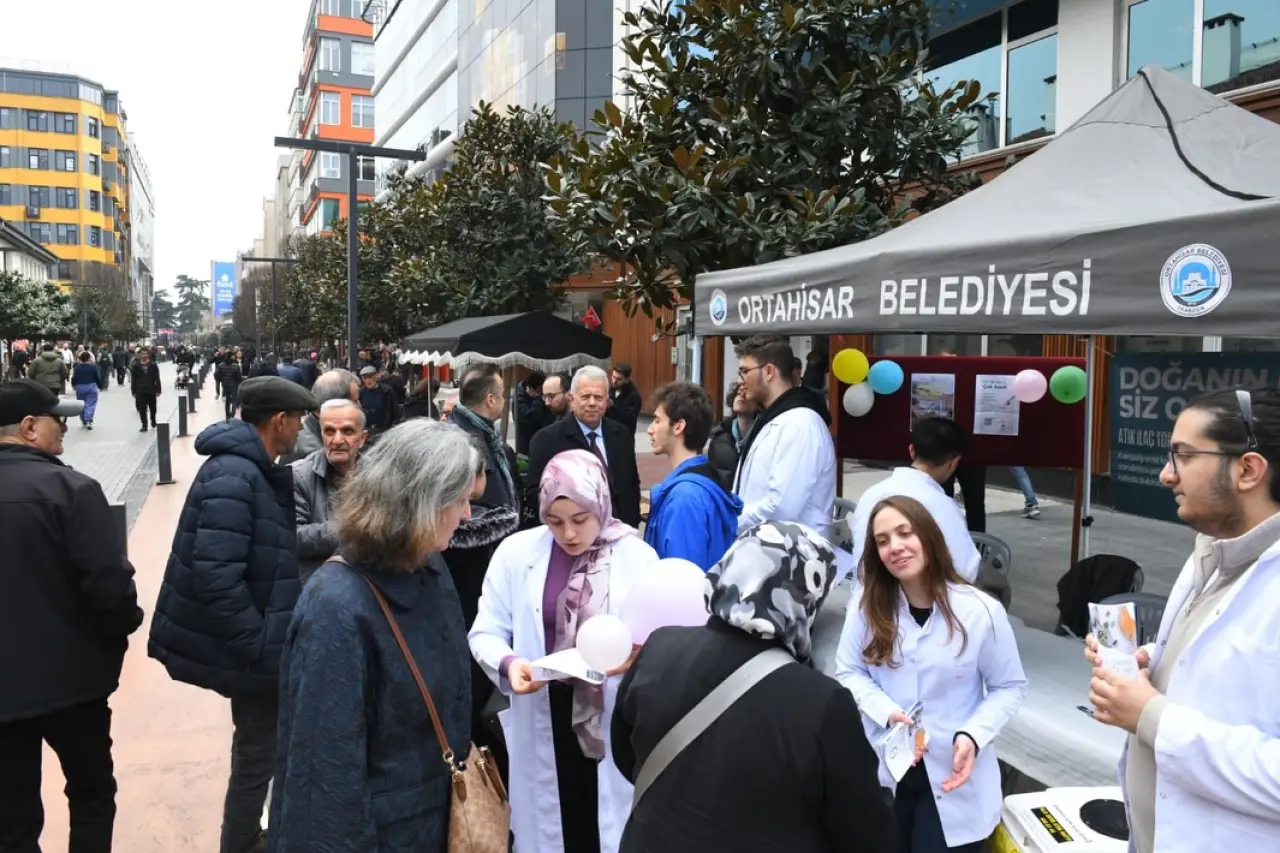 Ortahisar Belediyesi’nin, Trabzon İl Sağlık Müdürlüğü ve Eczacılar Odası iş birliğiyle yürüttüğü proje çerçevesinde; Karadeniz Teknik Üniversitesi (KTÜ) Tıp Fakültesi öğrencilerinin de katılımıyla Kahramanmaraş Caddesi’nde bilgilendirme etkinliği düzenlendi. İklim Değişikliği ve Sıfır Atık Müdürlüğü koordinasyonunda kurulan stantta vatandaşlara önemli bilgiler aktarıldı.