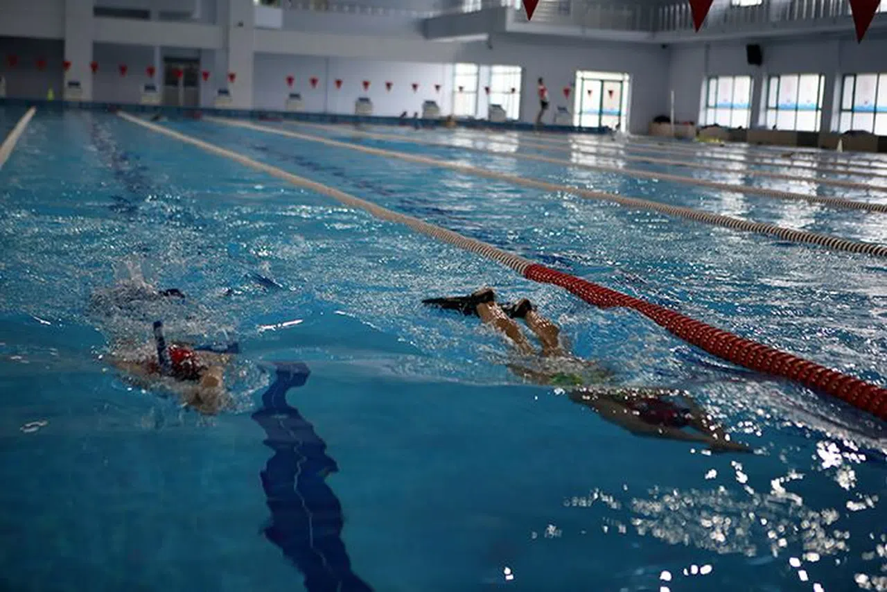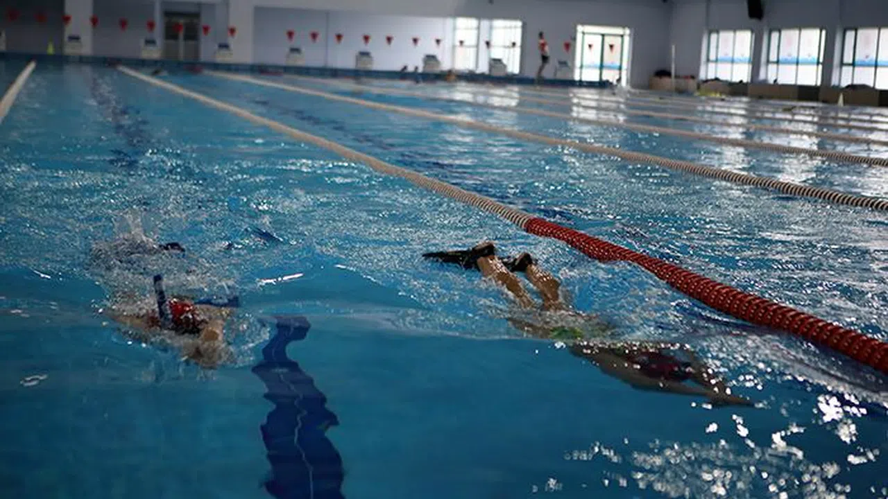 Olimpik Yüzme Havuzu'nda idman yapan 9 sporcu, antrenörler Reşit Çevir, Miraç Ömer Uslu ve Canberk Babaoğlu gözetiminde şampiyonalara hazırlandı.