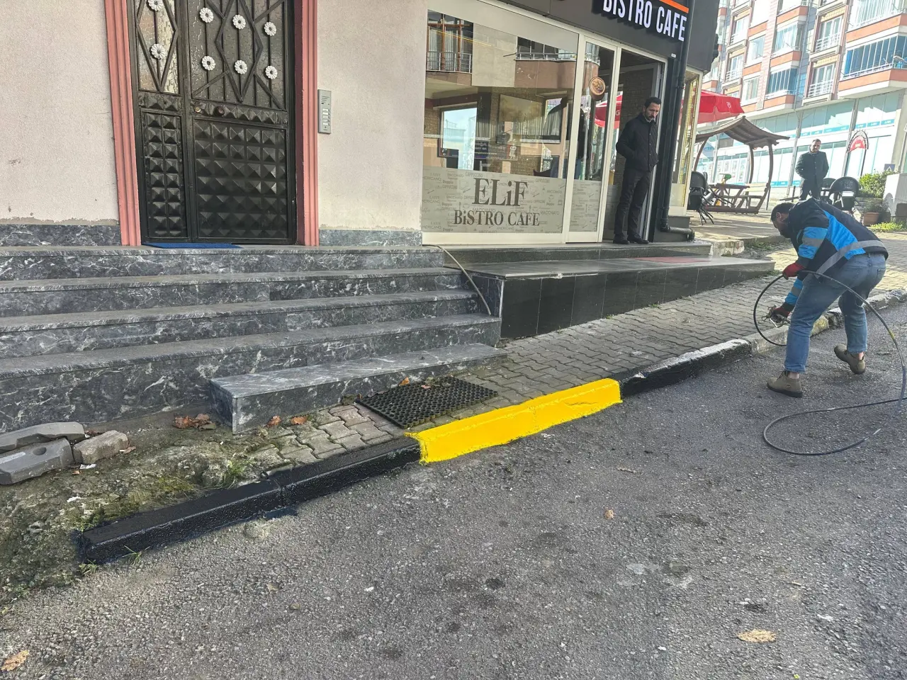 Trabzon Büyükşehir Belediyesi ile Şalpazarı Belediyesinin iş birliğinde, Fen İşleri Müdürlüğü ekipleri tarafından Şalpazarı ilçe merkezinde kaldırım taşlarını boyama çalışmaları yürütülüyor.