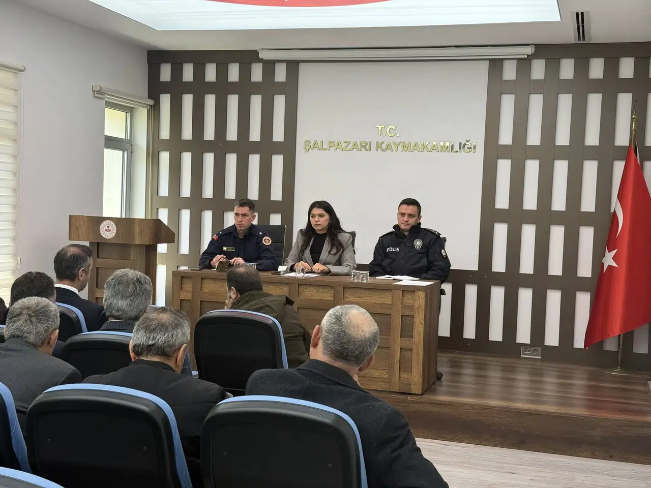 Şalpazarı'nda, Kaymakam Kezban Yerlikaya başkanlığında güvenlik ve asayiş konularını ele alan bir toplantı yapıldı. Mahalle muhtarlarıyla istişare edilerek sosyal risklerin tespiti ve çözüm önerileri üzerinde duruldu. Huzurlu bir gelecek için kurumlar arası iş birliği vurgulandı.