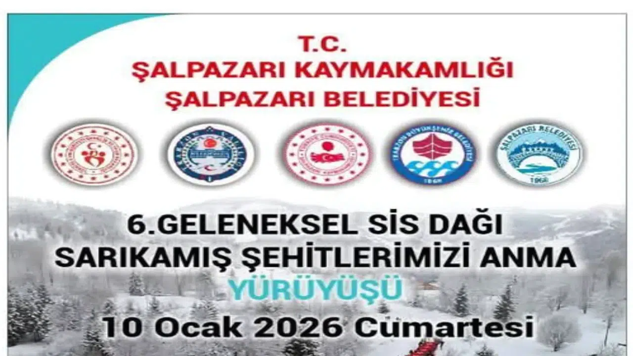 Şalpazarı Belediyesi tarafından geleneksel hale getirilen Sis Dağı Sarıkamış Şehitlerini Anma Yürüyüşü, bu yıl 6’ncı kez gerçekleştirilecek. Aziz şehitlerin hatırasını yaşatmak amacıyla düzenlenen etkinlik, 10 Ocak 2026 Cumartesi günü yapılacak.