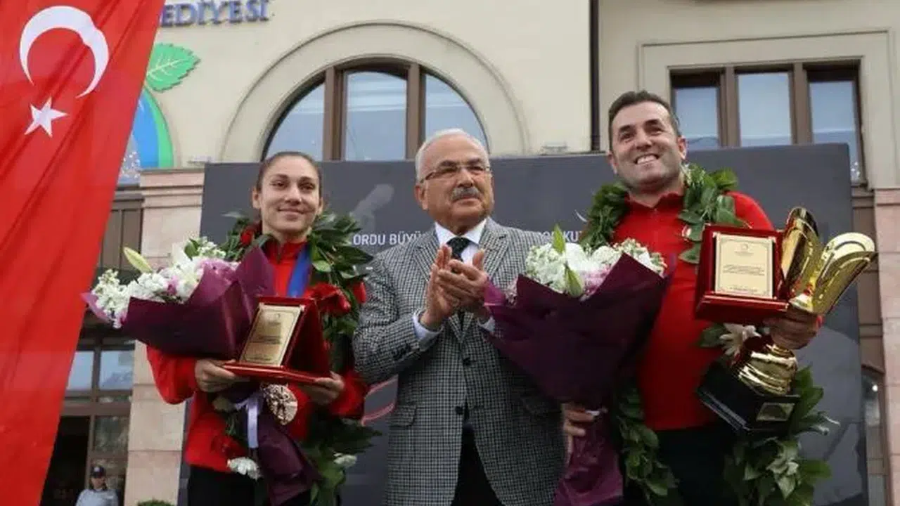 Ordu-Giresun Havalimanında coşkulu bir şekilde karşılanan ve mehter eşliğinde Ordu Büyükşehir Belediyesi önüne gelen Gamze Soğuksu, Başkan Güler tarafından karşılandı. Gamze Soğuksu’ya desteğini her daim hissettiren Ordu Büyükşehir Belediye Başkanı Dr. Mehmet Hilmi Güler, “Al bayrağımızı göndere çektirerek İstiklal Marşımızı okuttunuz. Biz de sizi mehter takımıyla karşıladık. Böyle güzel bir başarıyı kazandırdığın için altın madalya ile ülkemizi şehrimizi şereflendirdiğin için sana çok teşekkür ediyoruz” dedi.