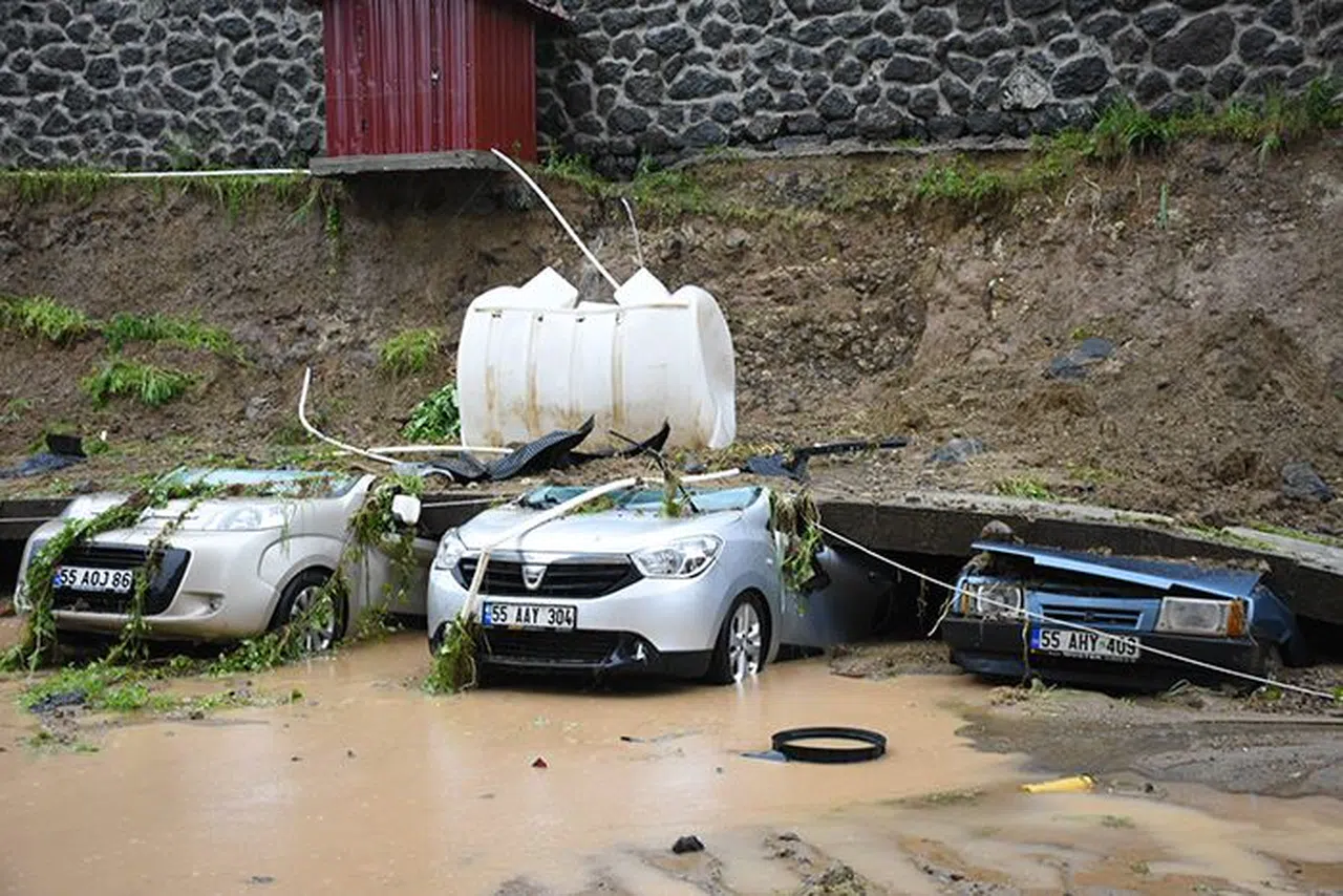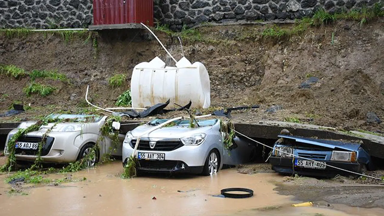 Samsun'un Canik ilçesinde bir apartmanın otoparkının istinat duvarının çökmesi sonucu altında kalan 5 araçta büyük hasar oluştu.