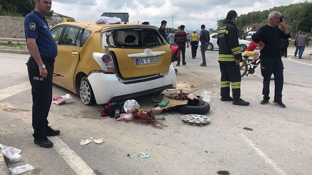 Alınan bilgiye göre, Niyazi Yılmaz (61) yönetimindeki 55 T 3533 plakalı taksi, ilçe girişi hastane kavşağında, Eray Şanlı'nın kullandığı 55 AGL 782 plakalı beton mikseri ile çarpıştı.