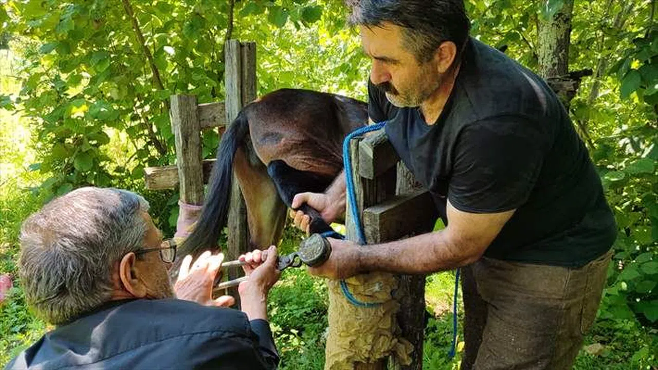 Evinin bahçesinde oluşturduğu düzenekte kendisine getirilen atların nallarını değiştiren Kaya, hayvanların ayaklarının bakımını da yapıyor.
