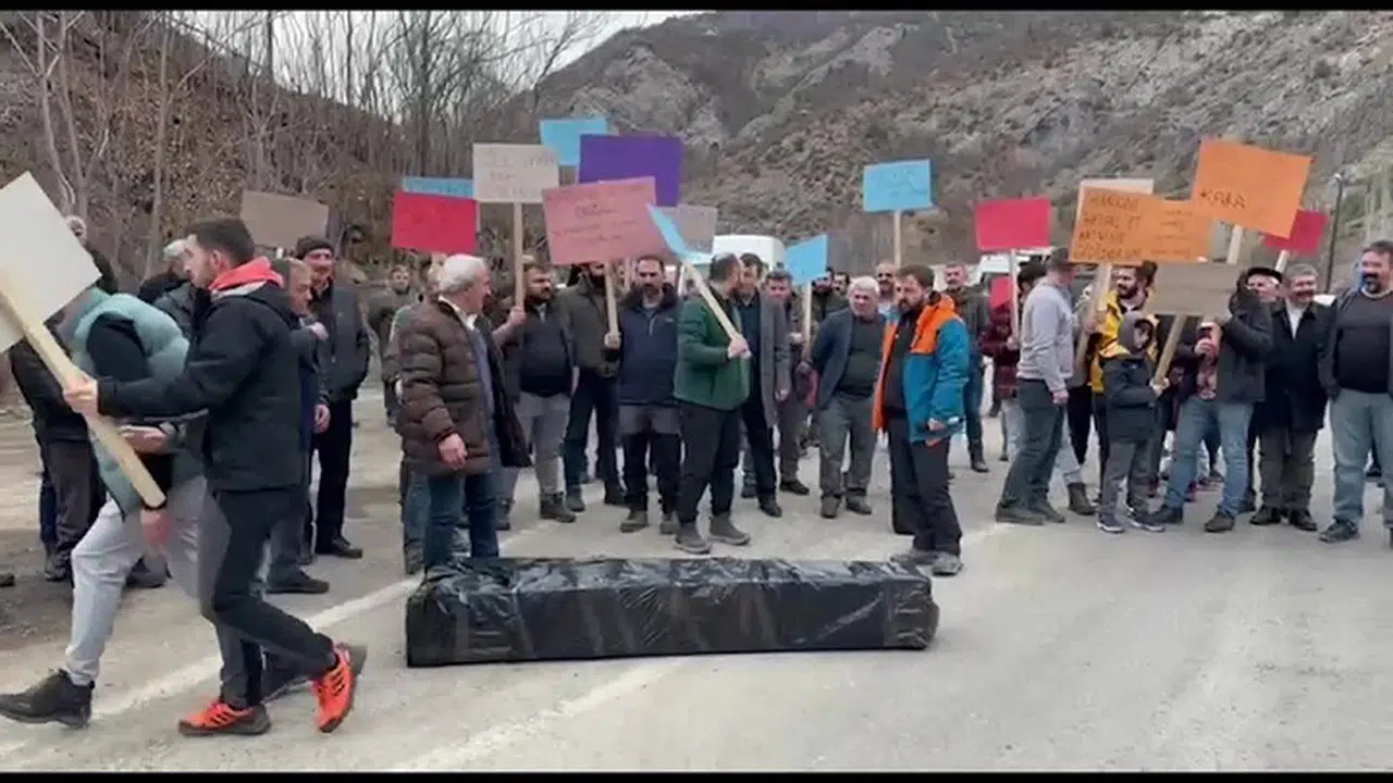 ŞAVŞAT HALKI ARTVİN-ARDAHAN KARAYOLUNDA TABUTLU EYLEM YAPTI