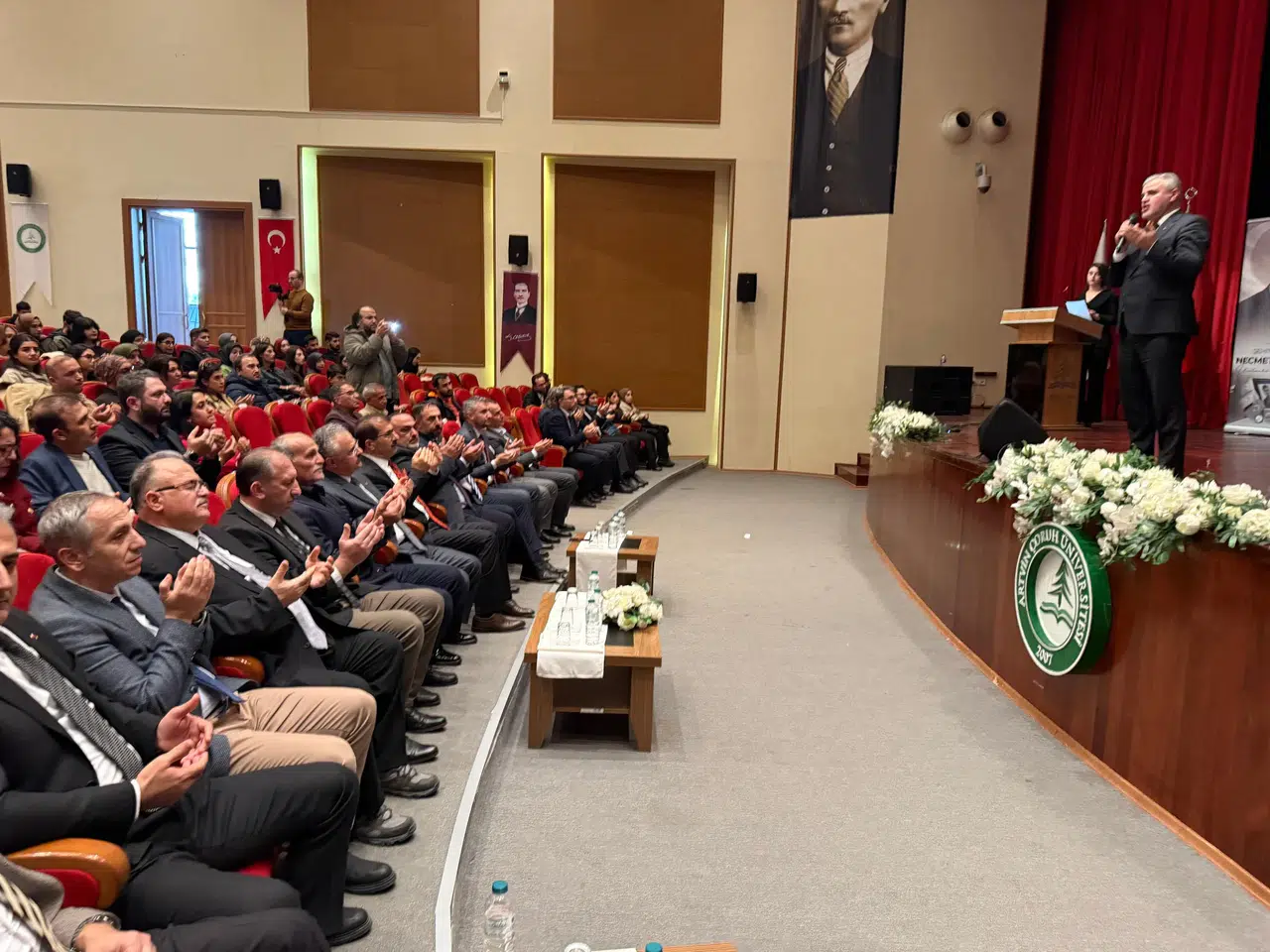 Programa AÇÜ Rektör Yardımcısı Prof. Dr. Fikret Sözbilir, Artvin İl Müftüsü Ertuğran Mehmet Soylu, İl Millî Eğitim Müdürü Fahri Acar, kurum amirleri, akademisyenler, öğrenciler ve Şehit Öğretmen Necmettin Yılmaz’ın babası Hamit Yılmaz katıldı.