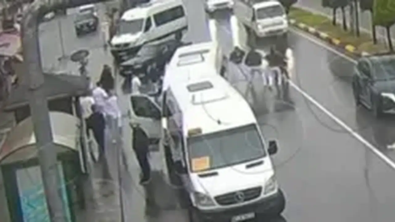 Deniz Ulaştırma İşletme Mühendisliği öğrencilerinin, kiraladıkları okul servis aracını durduran minibüs şoförleri arasında çıkan ve 2 dolmuşçunun tutuklandığı kavganın mobese kameralarına yansıyan görüntüleri ortaya çıktı.