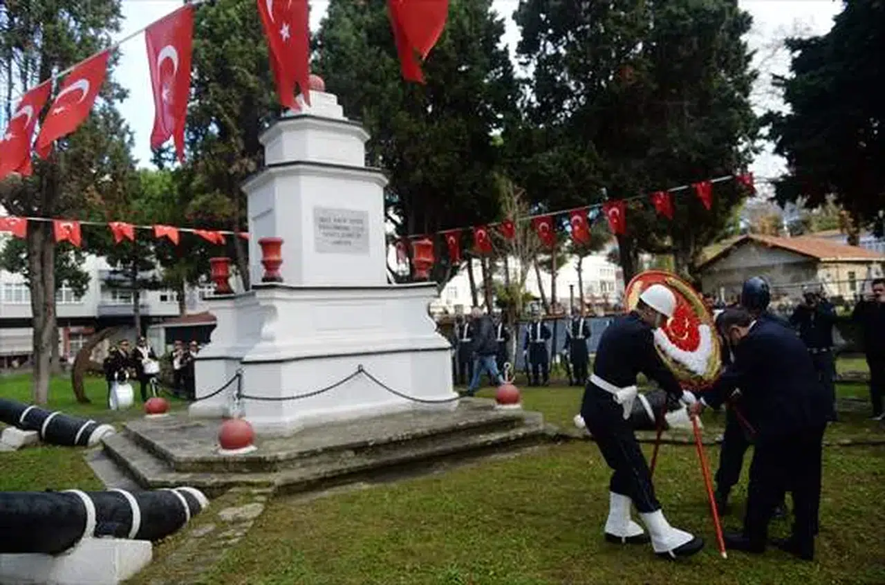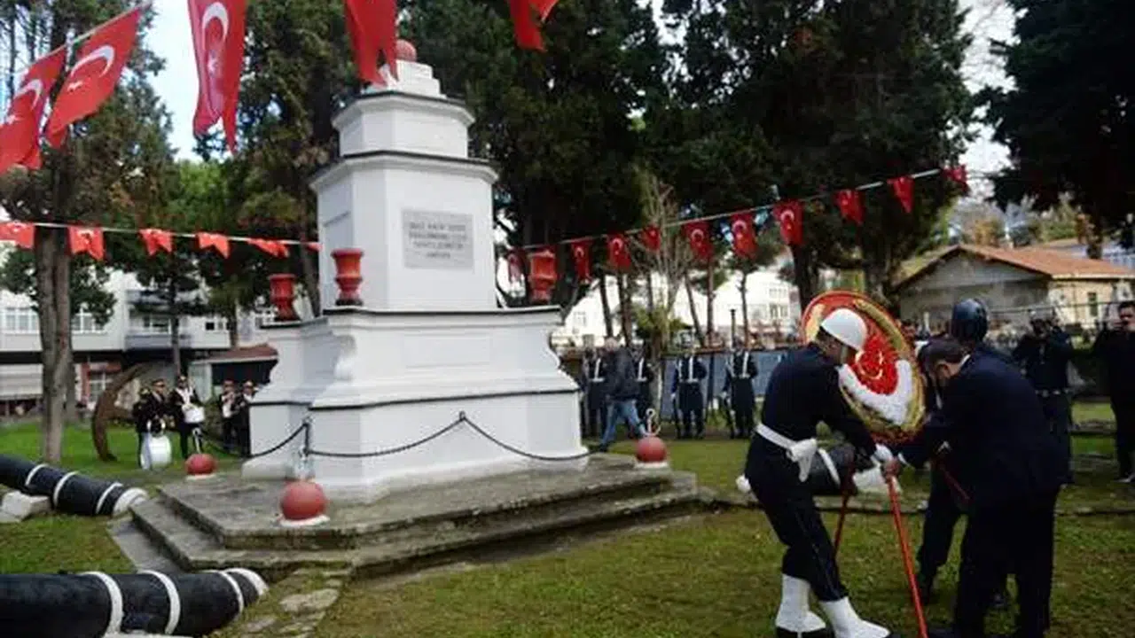 Sinop Müzesi'nin bahçesindeki tören, Vali Mustafa Özarslan ve Belediye Başkanı Barış Ayhan'ın Şehitler Anıtı'na çelenk sunumuyla başladı.