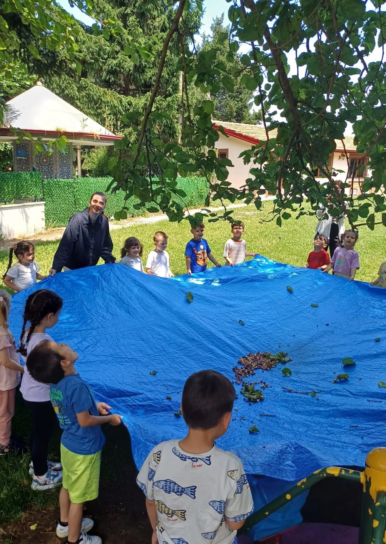 Bugün Sürmene Talat Orhon Anaokulu'nda gerçekleştirilen etkinliğe katılan öğrenciler, doğanın derinliklerinde keyifli bir zaman geçirdiler. Etkinlik alanında oluşturulan atmosfer, çocukların doğayla olan ilişkilerini pekiştirecek anlar sunuyordu. Okul bahçesinde öğrenciler, bahçedeki dut ağaçlarının altında branda gererek dut toplama etkinliği gerçekleştirdiler. Bu süreç, çocukların fiziksel becerilerini geliştirirken, aynı zamanda ekip çalışmasını da öğrenmelerine katkı sağladı.
