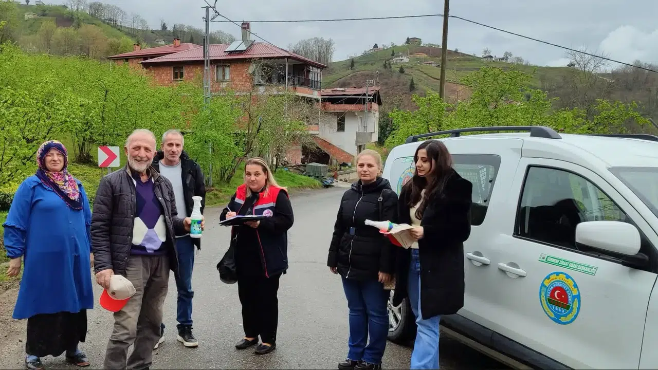 Bu çerçevede Birlik Mahallesi’nde üreticilerle bir araya gelinerek zararlıya karşı alınması gereken önlemler hakkında bilgilendirme yapıldı. Gerçekleştirilen saha çalışmasında ayrıca üreticilere biyosidal sprey dağıtımı yapılarak mücadele sürecine destek sağlandı.