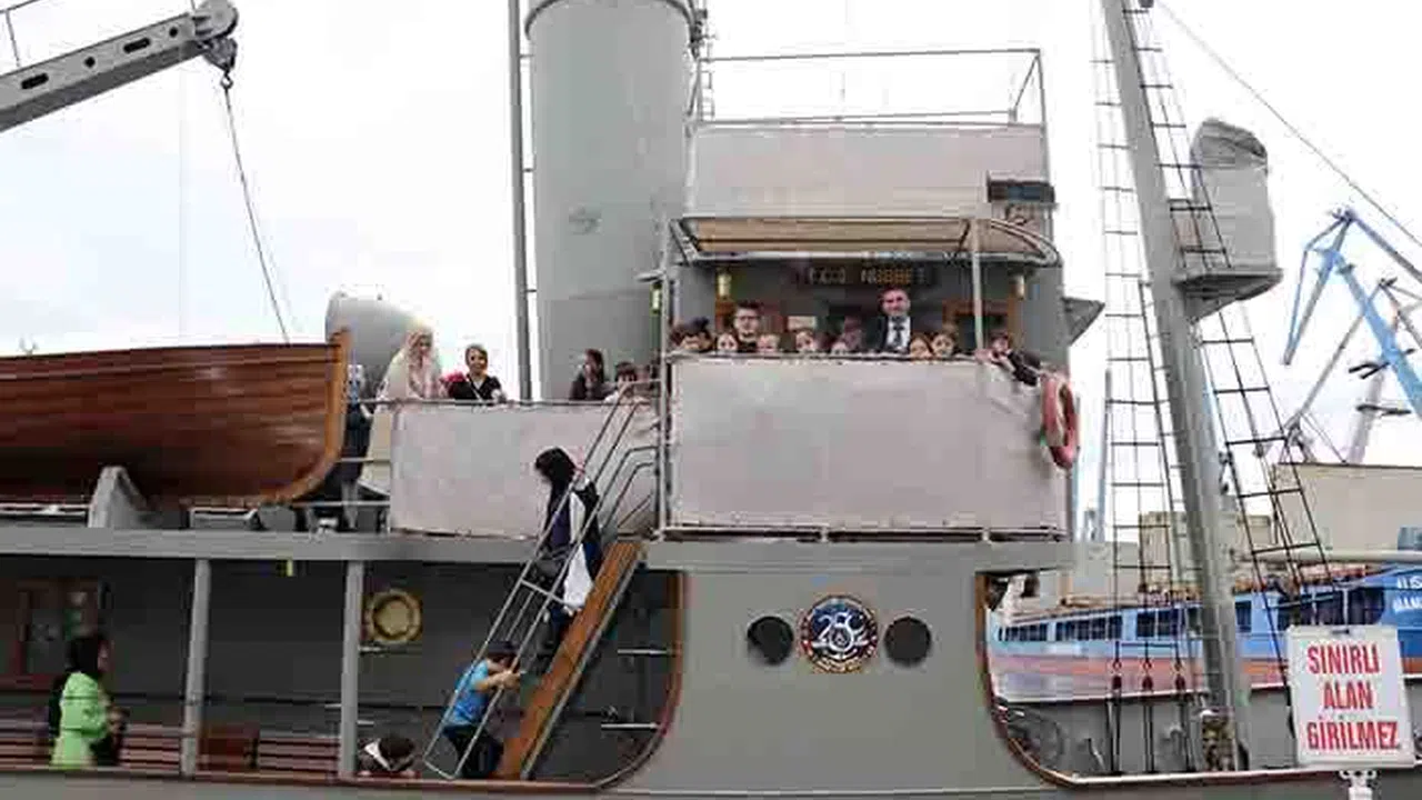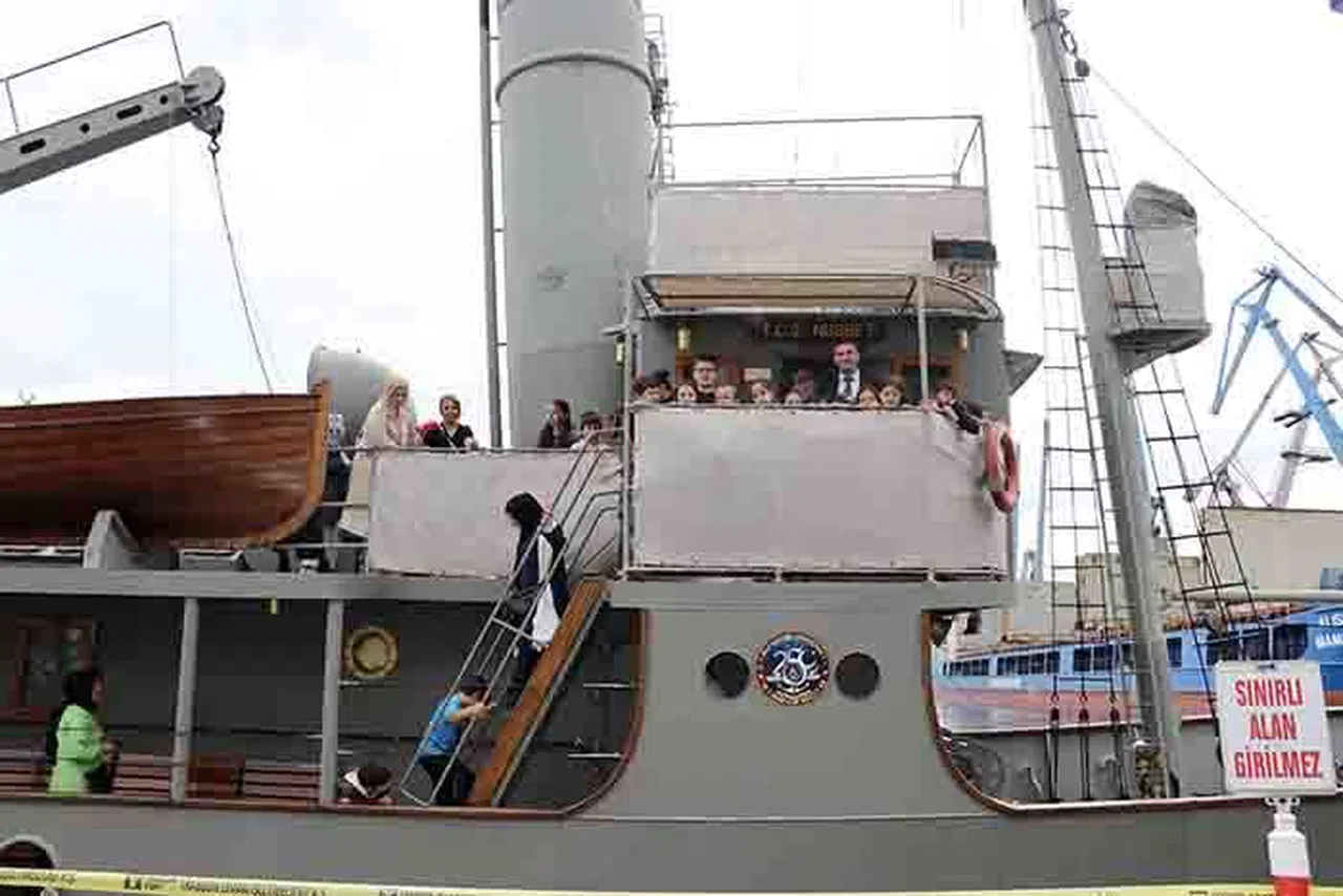 İl Milli Eğitim Müdürü Evren Görmüş de gemiyi birlikte gezdiği ilkokul ve ortaokul öğrencilerine tarihi bilgiler verdi.