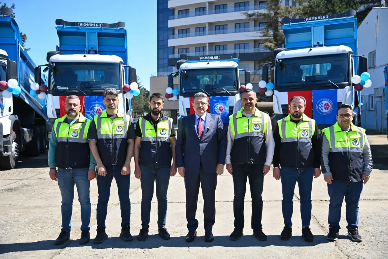 Trabzon Büyükşehir Belediyesi, şehir genelinde hizmet kapasitesini artırmak amacıyla araç filosunu güçlendirmeye devam ediyor. Belediye, toplam 46 milyon 500 bin TL’lik yatırımla 5 yeni kamyon ve 1 iş makinesini daha bünyesine katarak hizmete aldı.