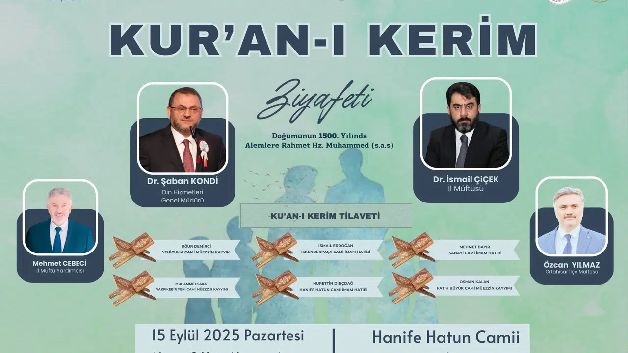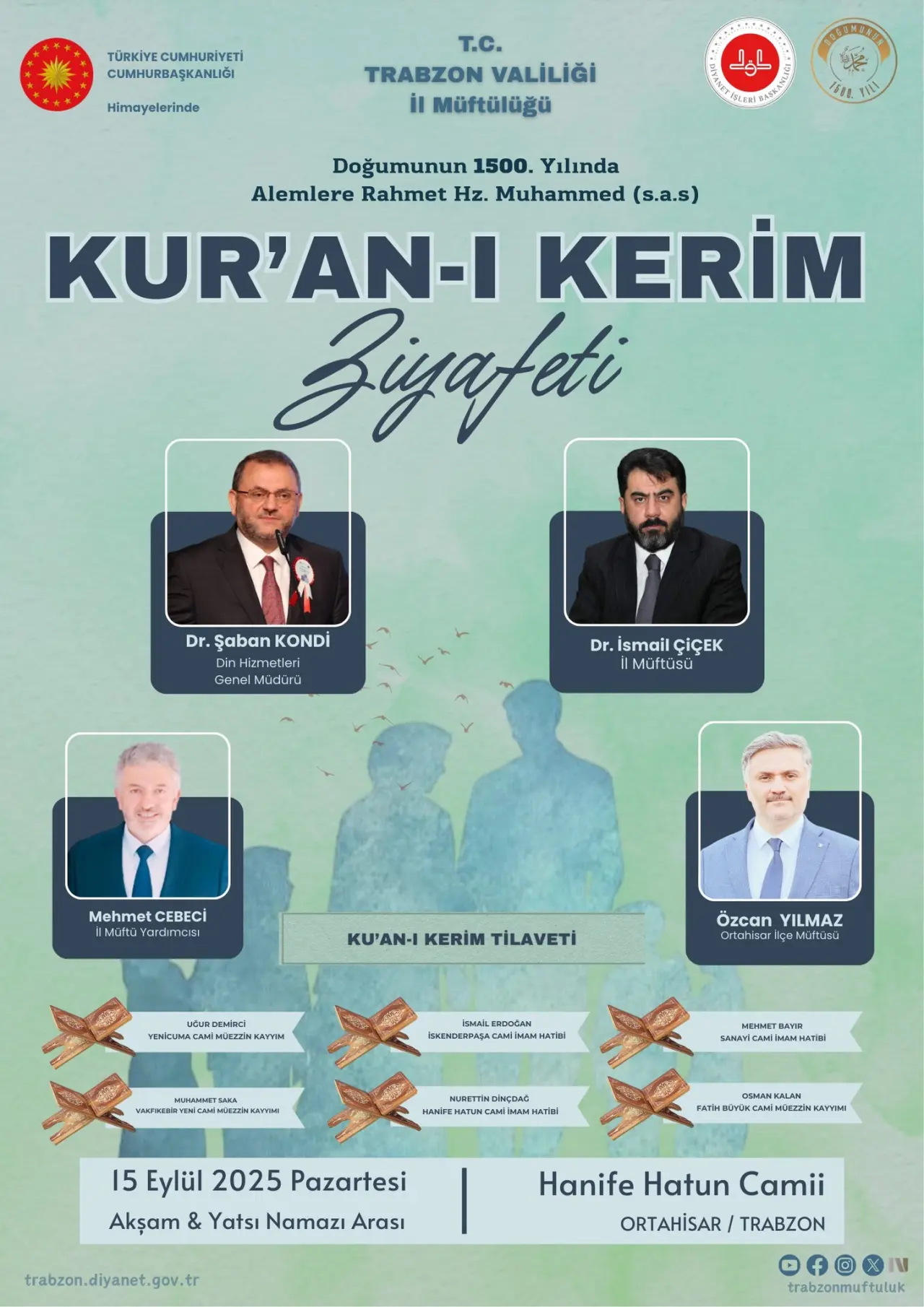 Trabzon İl Müftülüğü, 15 Eylül Pazartesi günü düzenlenecek iki özel etkinlikle vatandaşları manevi bir buluşmaya davet ediyor. Programlara Din Hizmetleri Genel Müdürü Dr. Şaban Kondi ve İl Müftüsü Dr. İsmail Çiçek katılacak.