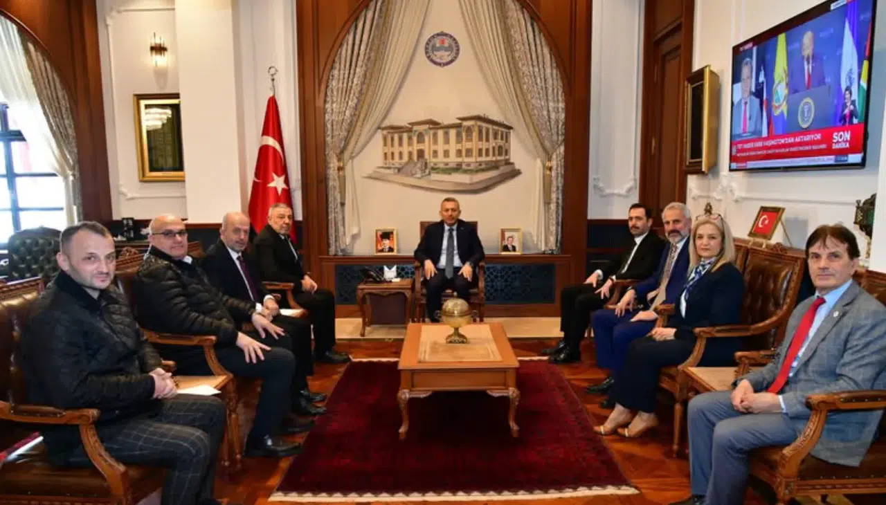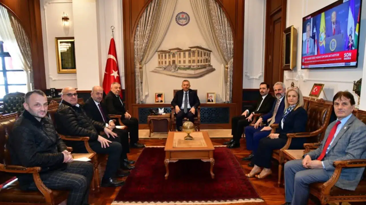 Trabzon Dernekleri Federasyonu Genel Başkanı İsmail Şatıroğlu ve beraberindeki yönetim kurulu üyeleri, Trabzon Valisi Tahir Şahin’i makamında ziyaret etti. Trabzon Valiliği’nde gerçekleşen ziyarete Vali Yardımcısı Hacı Osman Hökelekli de katıldı.