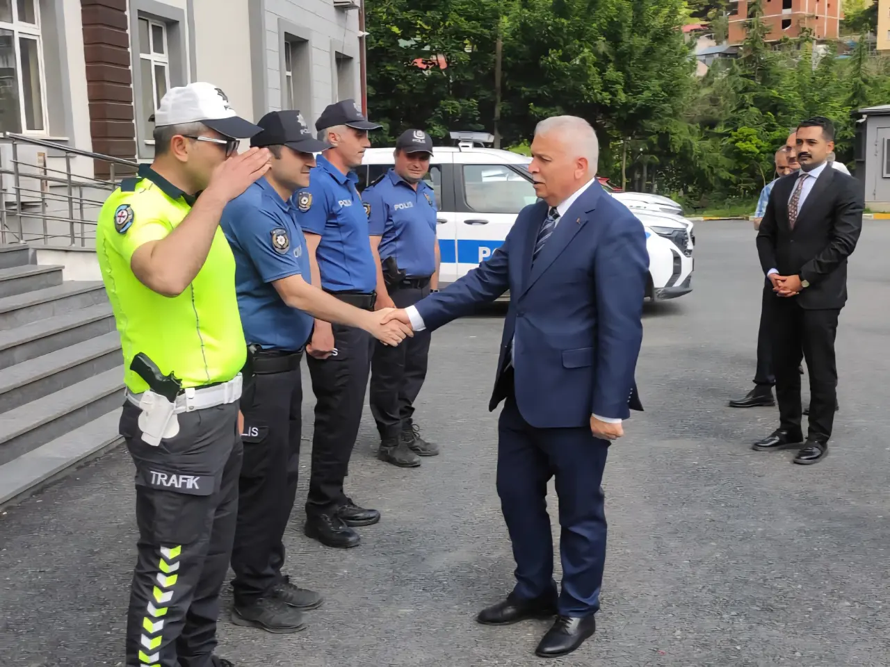 Vali Aziz Yıldırım, Kurban Bayramı dolayısıyla Düzköy İlçe Emniyet Müdürlüğü’nde görev yapan personeli ziyaret etti ve bayramlaştı.