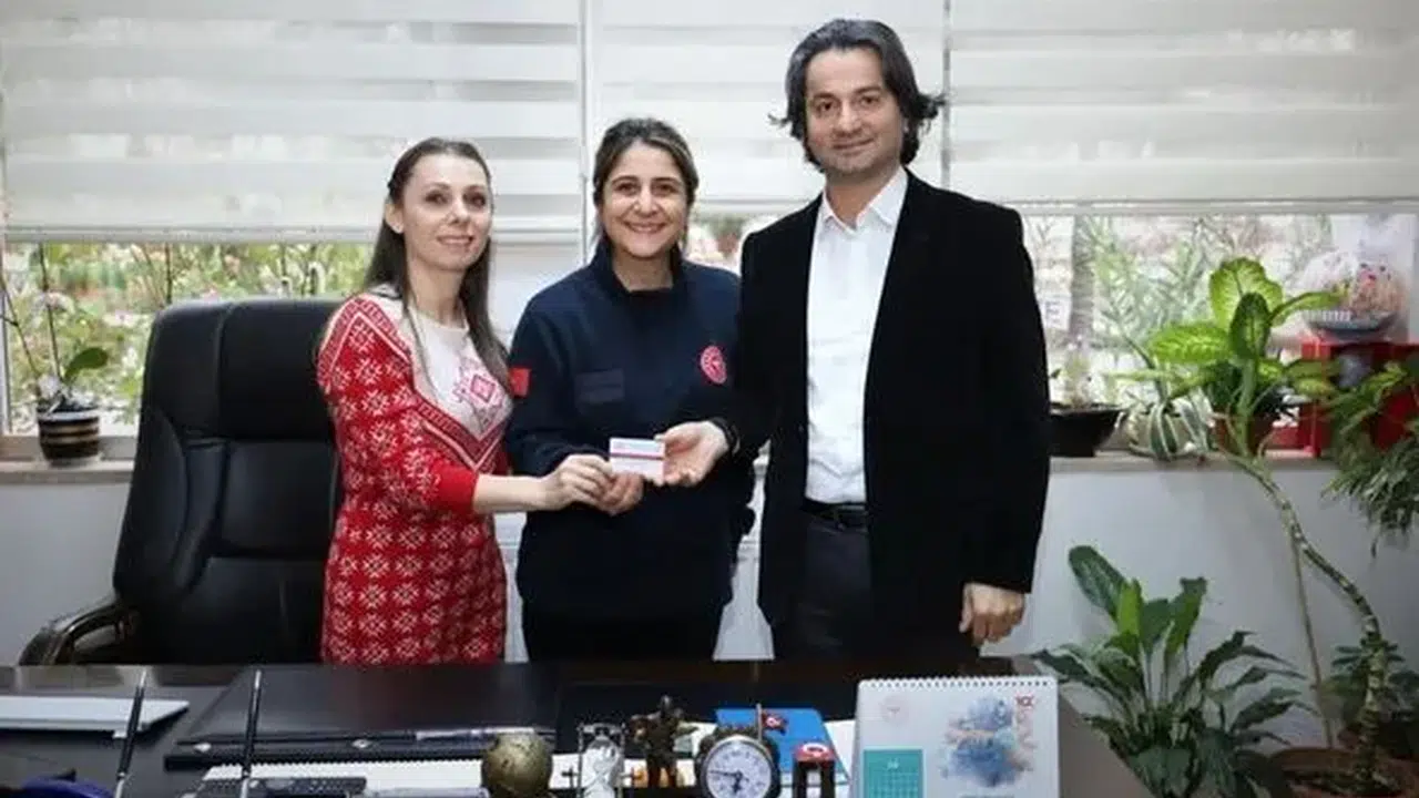 Sağlık Hizmetleri Başkanı Op.Dr. Yavuz Çakıroğlu, bağışta bulunan personellere teşekkür ederek, kendilerine organ bağışı kartlarını takdim etti.