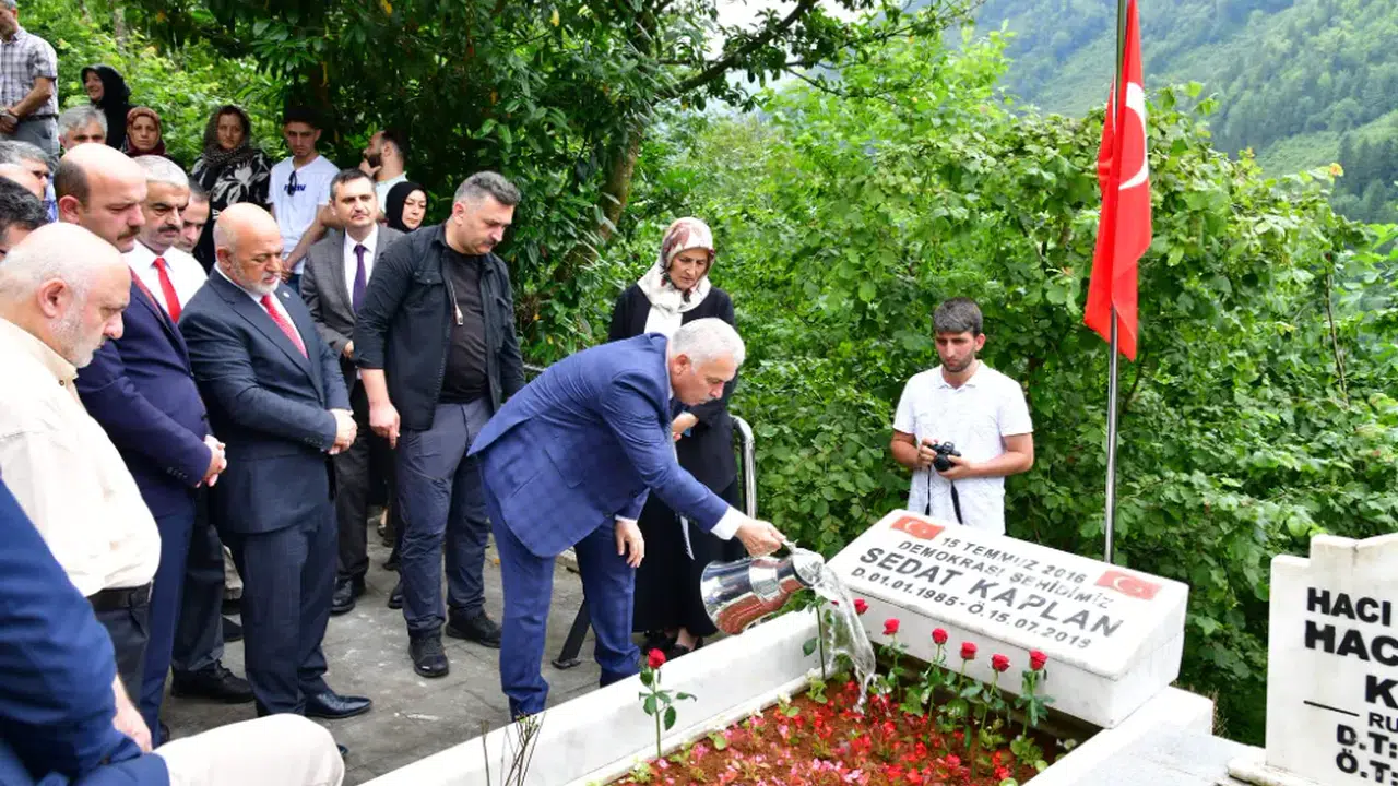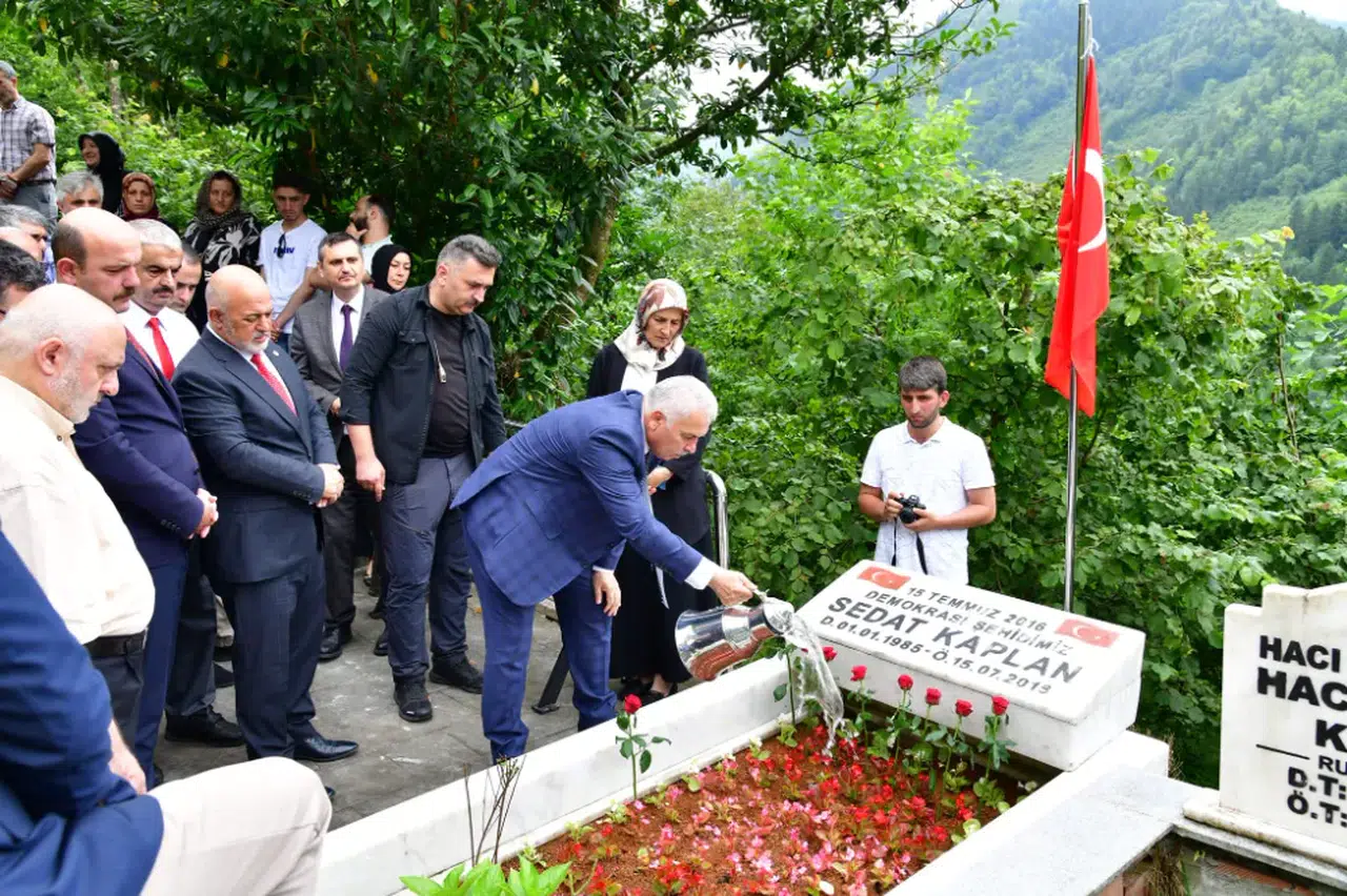Trabzon Valisi Aziz Yıldırım, 15 Temmuz hain darbe girişiminin yıldönümünde Türkiye Büyük Millet Meclisi önünde şehit edilen Sedat Kaplan'ın kabrini ziyaret etti. Yomra ilçesi Oymalı Mahallesi'nde bulunan şehidin kabri başında düzenlenen programa; Jandarma Komutanı Tuğgeneral Mustafa Erdem, İl Emniyet Müdürü Murat Esertürk, Sahil Güvenlik Doğu Karadeniz Grup Komutanı SG Binbaşı Aytaç Bayırlı, İl Müftüsü Selami Aydın, Aile ve Sosyal Hizmetler İl Müdürü Hüseyin Mollaoğlu, Yomra Kaymakamı Muhammet Öztabak, Yomra Belediye Başkanı Mustafa Bıyık, şehidimizin ailesi ve vatandaşlar katıldı.