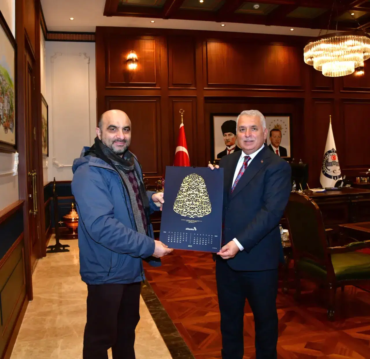 Trabzon Valisi Aziz Yıldırım, Albaraka Türk Sanat Danışmanı Abdusselam Ferşatoğlu’nu makamında ağırladı. Ziyaret sırasında Ferşatoğlu, Albaraka Türk’ün 40. yılına özel hazırlanan takvimi Vali Yıldırım’a hediye etti.Görüşme esnasında Ferşatoğlu, Albaraka Türk’ün sanat ve kültür alanında gerçekleştirdiği projeler hakkında bilgiler paylaştı. Kurumun sanata ve sanatçılara verdiği desteği anlatan Ferşatoğlu, bu tür çalışmalara duydukları ilginin önemini vurguladı.Vali Yıldırım ise sanat ve kültür projelerinin toplumsal faydasına dikkat çekerek, Albaraka Türk’ün bu alandaki katkılarının değerli olduğunu belirtti. Ayrıca, bu tür çalışmaların toplumu daha bilinçli ve kültürel açıdan zengin bir hale getirdiğine değinerek, Ferşatoğlu'na projelerinde başarılar diledi.