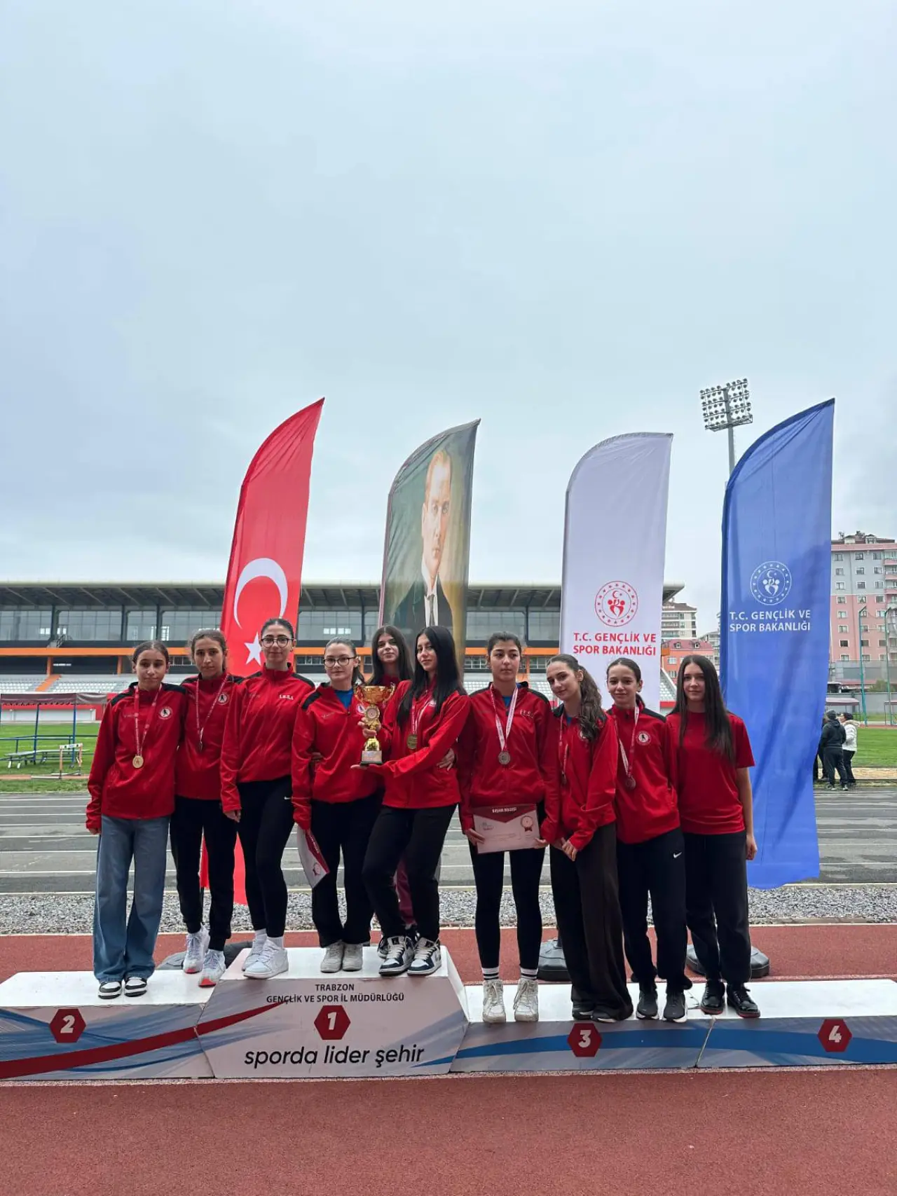 Trabzon’da düzenlenen Okul Sporları Puanlı Atletizm İl Birinciliği müsabakalarında İbrahim Erdemoğlu Spor Lisesi A Genç Kız Takımı il birinciliğini kazandı.