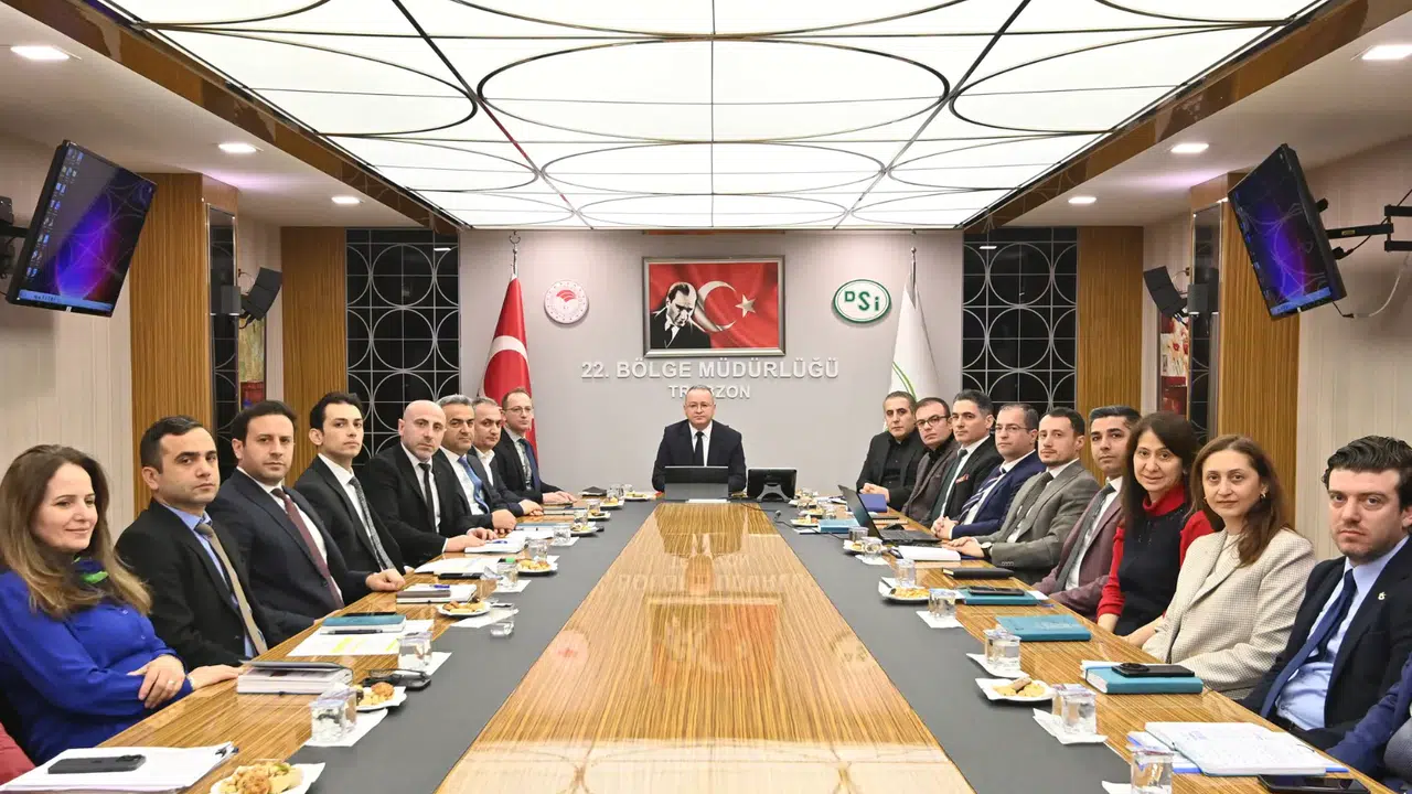 DSİ 22. Bölge Müdürlüğü Trabzon bünyesinde gerçekleştirilen “Genel Değerlendirme Toplantısı”, Bölge Müdürü Fatih Kişi başkanlığında yapıldı. Toplantıya Bölge Müdür Yardımcıları ile Şube Müdürleri katıldı.