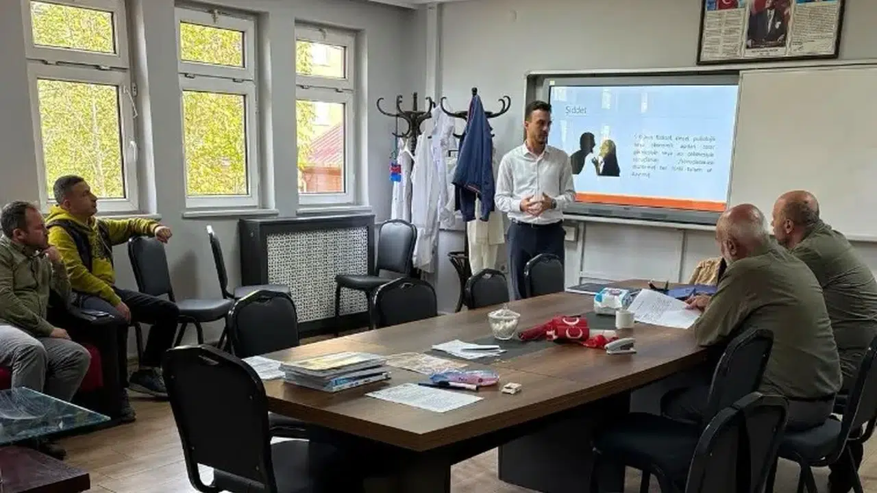 Psikolog Ünal Güney tarafından verilen eğitimde, kadına yönelik şiddetin türleri, nedenleri, toplumsal etkileri ve mücadele yöntemleri üzerine bilgiler paylaşıldı. Katılımcılara, şiddetle mücadelede kurumlar arası iş birliği ve yönlendirme süreçleri hakkında da bilgilendirme yapıldı.