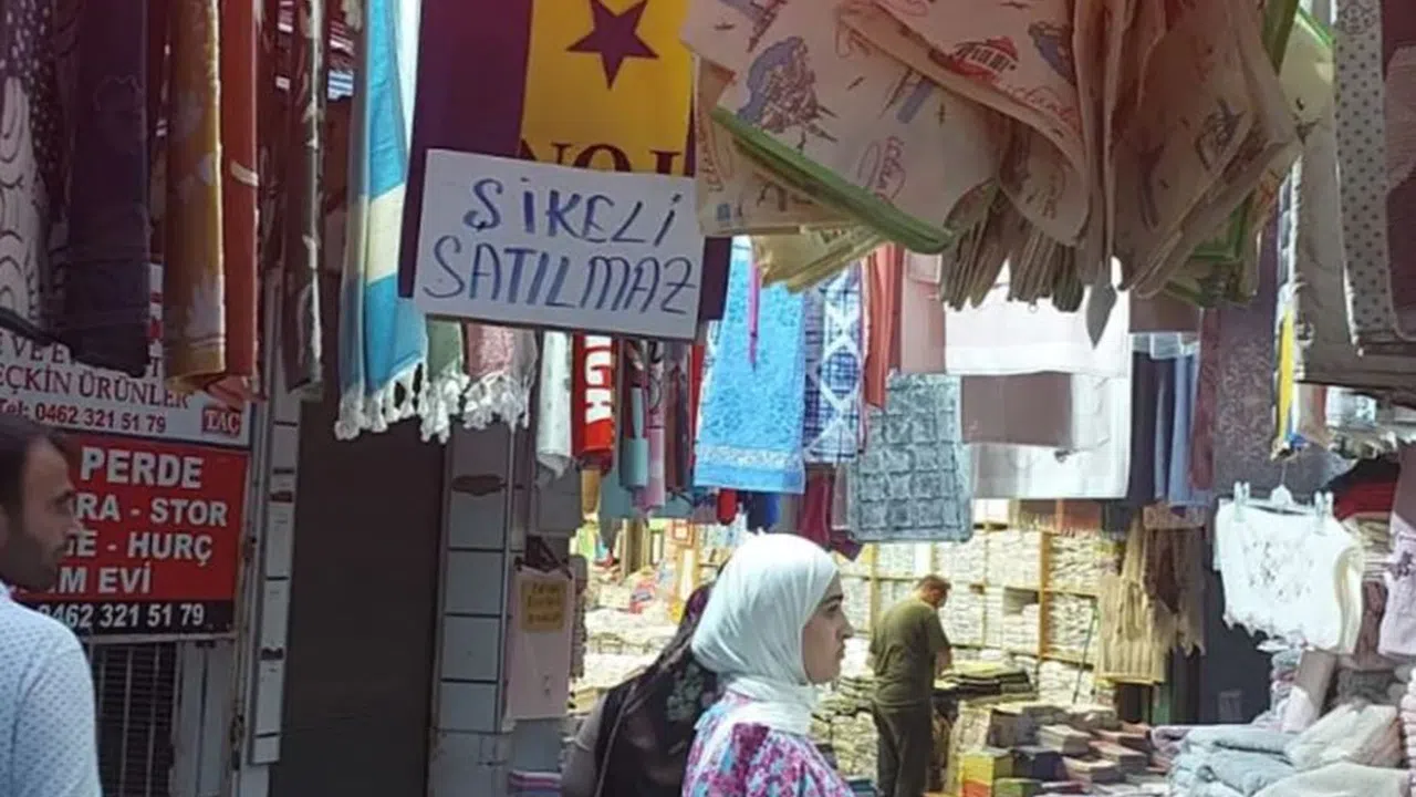 Trabzon’un en işlek noktalarından Kemeraltı’nda bir esnaf Fenerbahçe’ye ait nevresim takımını dükkanının girişine astı. Trabzon’daki esnaf mağazalarında Fenerbahçe’ye ait ürünlere güçlükle rastlanırken, esnafın astığı nevresim takımındaki not ise esnafın şikeyle anılan kulübe tepkisini ortaya koydu. Fenerbahçe’ye ait nevresim takımının üzerine esnaf, “Protesto amaçlıdır. Şikeli satılmaz.” notunu düştü. Kemeraltı’ndan geçen Trabzonsporlu taraftarlar Fenerbahçe nevresim takımının üzerinde yazan notu gördüğünde tebessüm ediyor.