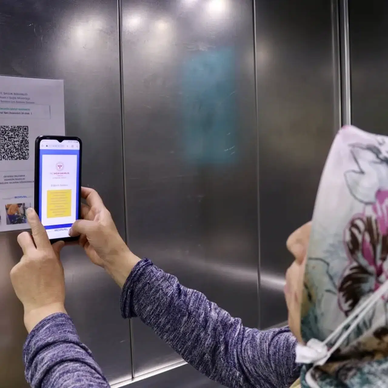 Kentteki kamu hastanelerinde asansörlerde hijyen denetimi için konulan "karekod" yazılımı ile hasta ve yakınları, gördükleri olumsuzlukları cep telefonuyla anında hastane yönetimine bildiriyor.