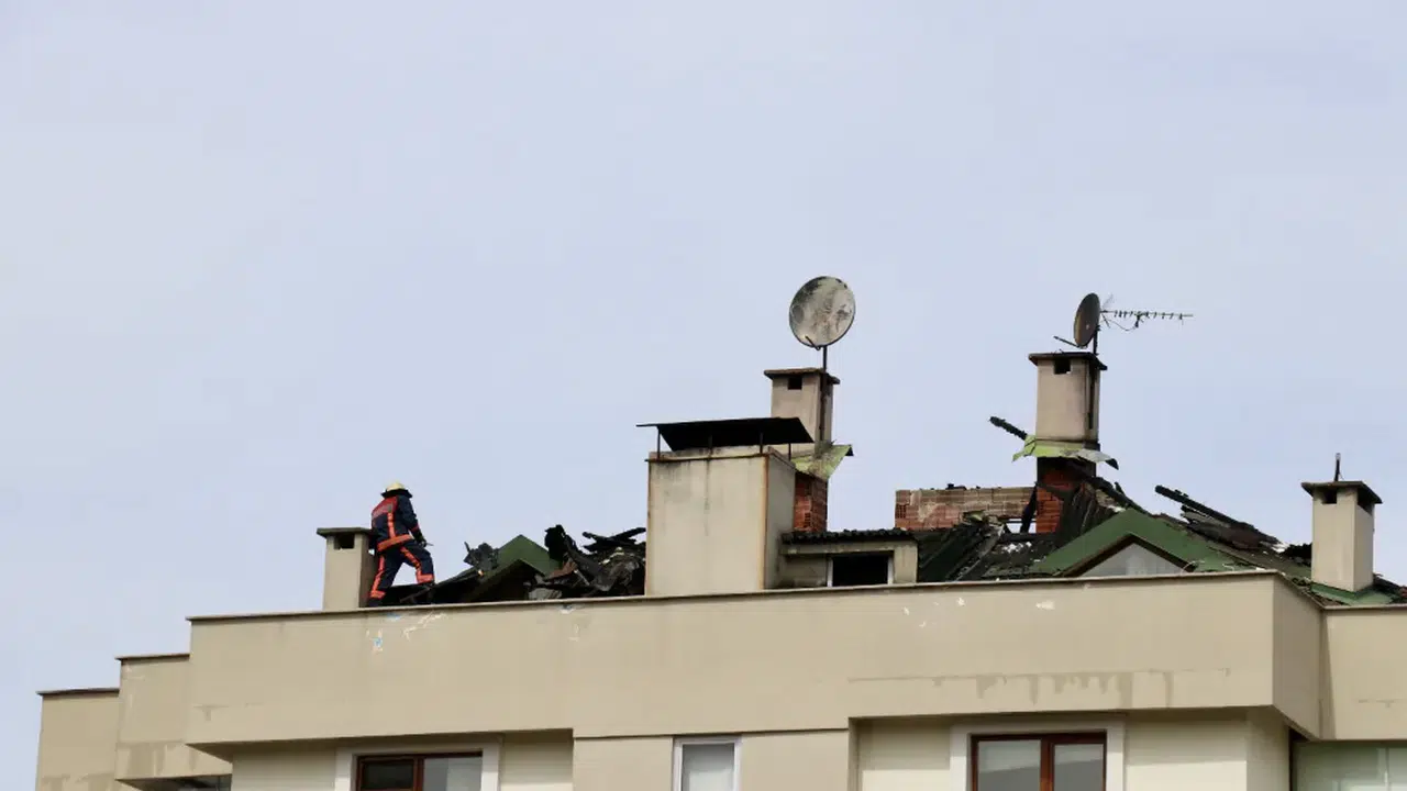 Binanın çatısında hasara yol açan yangının çıkış nedeni araştırılıyor.