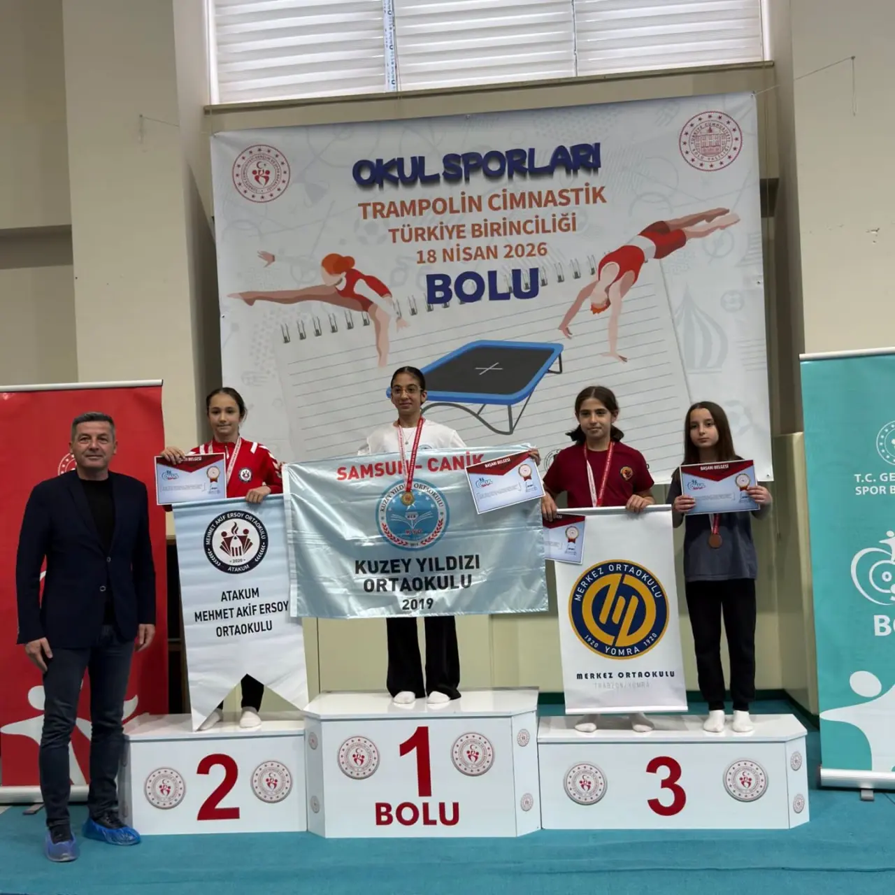 17-18 Nisan 2026 tarihlerinde Bolu'da düzenlenen Trampolin Cimnastik Okullararası Türkiye Şampiyonası'nda Trabzonlu sporcular, Eylül Taşkın Türkiye üçüncüsü, Alya Özyurt ve Göksu Tuana Kır ise dördüncülük elde etti. Başarılarından dolayı tebrik edildiler.