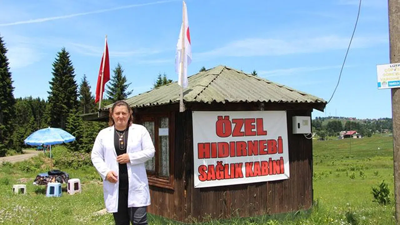 Trabzon'un Akçaabat ilçesinde babasının 35 yıl önce kalp krizi geçirerek hayatını kaybettiği bin 600 rakımlı Hıdırnebi Yaylası'nda sağlık kabini kuran emekli hemşire Münire Akçay, turizm merkezinde yöre sakinlerinin yanı sıra yerli ve yabancı turistlerin sağlık sorunlarında ilk müdahalesini yapıyor.