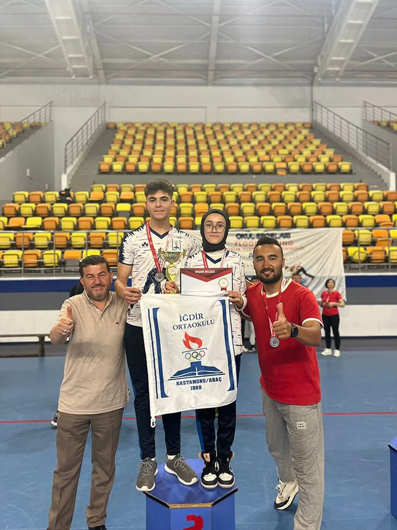 Ankara Yenimahalle Spor Kompleksi'nde 7-10 Haziran'da düzenlenen Floor Curling Türkiye Şampiyonası'nda Kastamonu'yu temsil eden İğdir İmam Hatip Ortaokulu öğrencilerinden Fatma Mece ve Eray Küçükyiğit, yıldız karma kategorisinde Türkiye 2'ncisi oldu.