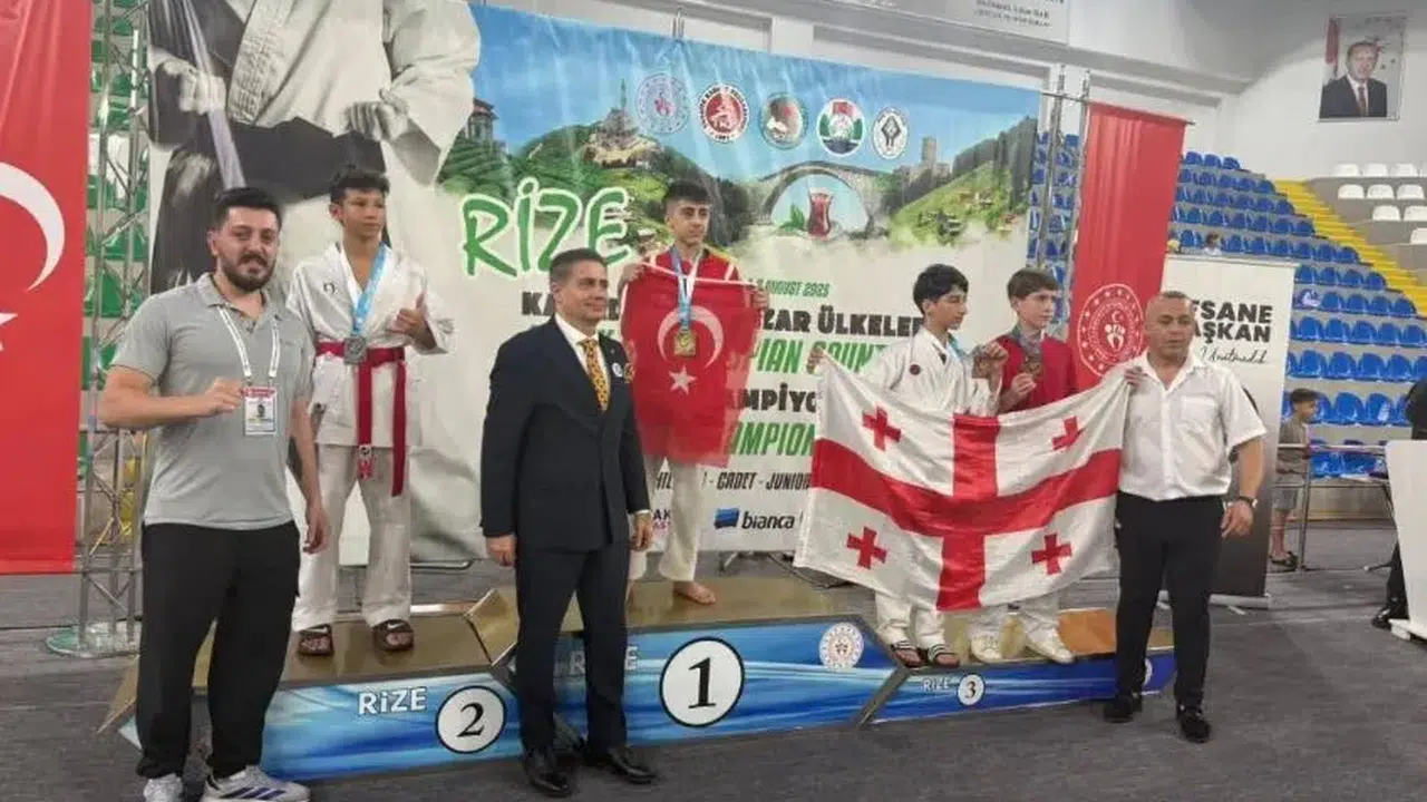 Rize’de düzenlenen Uluslararası Hazar Ülkeleri Karate Şampiyonası, 10 farklı ülkenin 500 sporcusunu ağırlayarak kıyasıya bir mücadeleye sahne oldu. Böylesine prestijli bir organizasyonda ilçemizi ve ülkemizi başarıyla temsil eden genç sporcu Onur Tuzcu, 12-13 yaş erkekler 45 kg kategorisinde ikincilik elde ederek büyük bir başarıya imza attı.