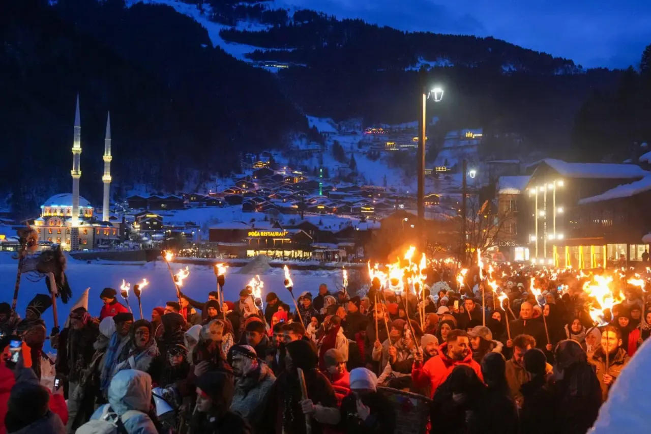 Uzungöl Kış Festivali Coşkuyla Başladı: Kalandar Geleneği Yürüyüşle Canlandırıldı