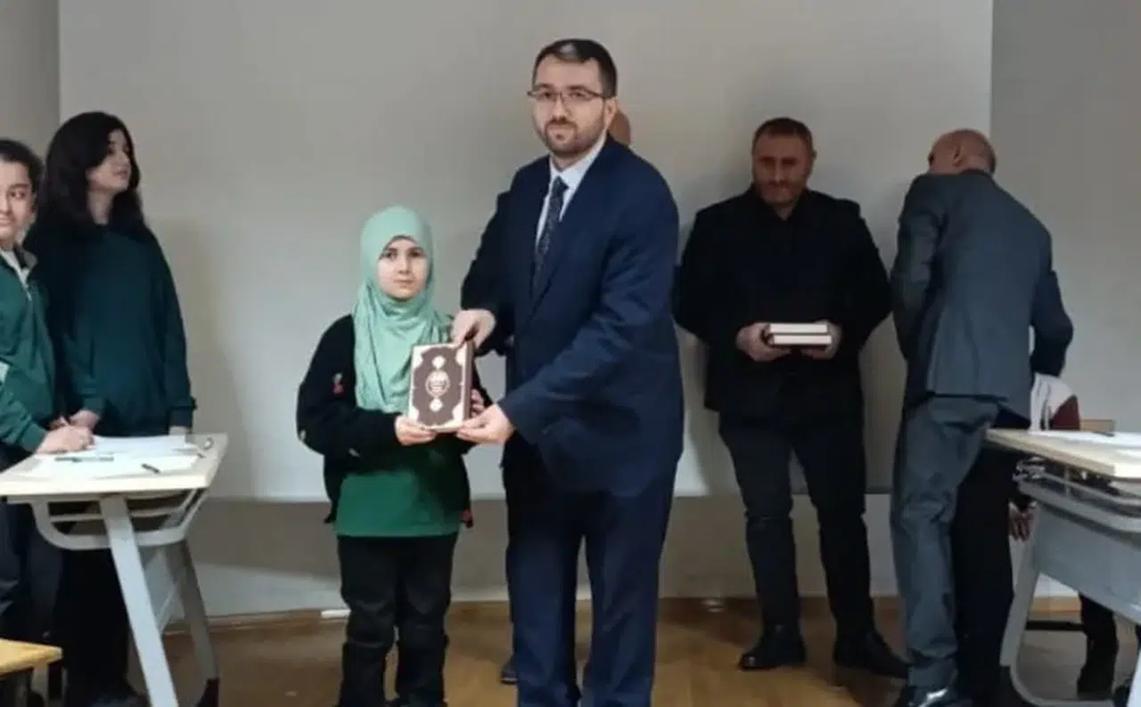 Öte yandan, seçmeli ders olarak Kur’an-ı Kerim dersini tercih eden 5. sınıf öğrencilerine İlçe Müftülüğü tarafından Kur’an-ı Kerim hediye edildi. Kur’an-ı Kerim’in insan hayatına rehberlik eden, ahlaki değerleri güçlendiren ve bireyin manevi gelişimine yön veren ilahi bir kitap olduğu vurgulanırken, küçük yaşta Kur’an’la buluşmanın çocukların değer dünyasının inşasında önemli bir kazanım olduğu belirtildi.