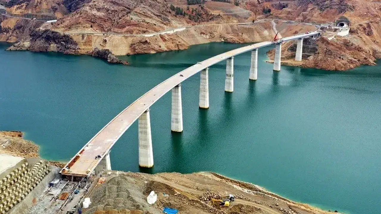 Yusufeli Merkez Viyadüğü'nün son segmenti yerine yerleştirilerek iki yakayı birleştiren ekipler, köprü üzerindeki asfalt çalışmalarını tamamlamak üzere. Bakan Uraloğlu, açıklamasında, viyadüğün hızla tamamlanarak hizmete açılacağını ifade etti ve projenin Artvin'deki önemine vurgu yaptı.