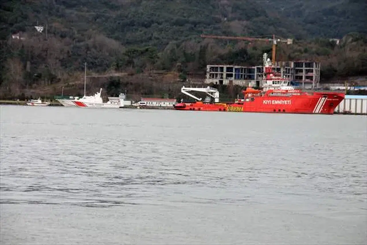 Sahil Güvenlik, Kıyı Emniyeti Genel Müdürlüğü (KEGM), AFAD ve diğer ekipler, kayıp personeli arama çalışmalarını karadan ve denizden sürdürüyor.