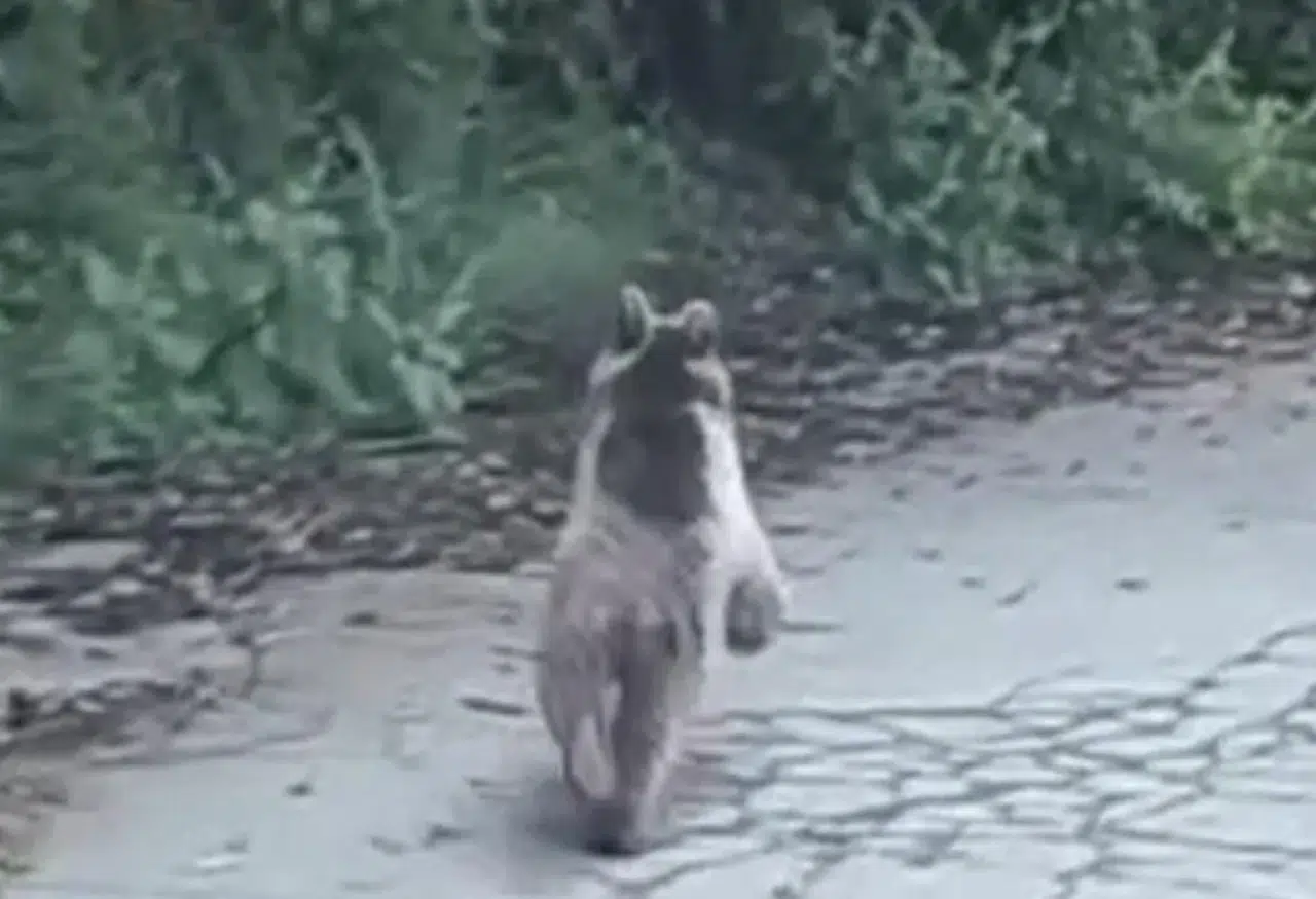 Kentin yüksek kesimlerinde yaşam alanları karla kaplanınca yiyecek arayışına geçen ayılardan biri Çamlıhemşin ilçesine bağlı Topluca köyüne indi. İlçe merkezine doğru yolcu minibüsü ile seyir halinde olan Çamlıhemşin Esnaf ve Sanatkarlar Odası Başkanı Cumali Bergal, yol üzerinde koşan bozayıya fark etti. Aracının hızını düşüren Bergal, önüne çıkan aynının beton yoldan yaklaşık 2 dakika koştuğu anları cep telefonu kamerasıyla kayda aldı. Bergal, bu anları ‘maraton koşusu başlamıştır. Dikkat et dost’ notuyla sosyal medya hesabından paylaştı. Görüntülerde, ayının yaklaşık 2 dakika boyunca koşarak ilerlediği, ardından ormana girip, gözlerler kaybolduğu görüldü. Görüntülerde, Bergal’ın ise ayıya ‘Selamlar dost. Maraton koşusu başlamıştır. Çok koşma düşersin. Virajlara yavaş gir, yorulma kaza yapacaksın dikkat et. Aferin sana. Kendine dikkat et yine seni bekliyoruz’ dediği duyuldu.