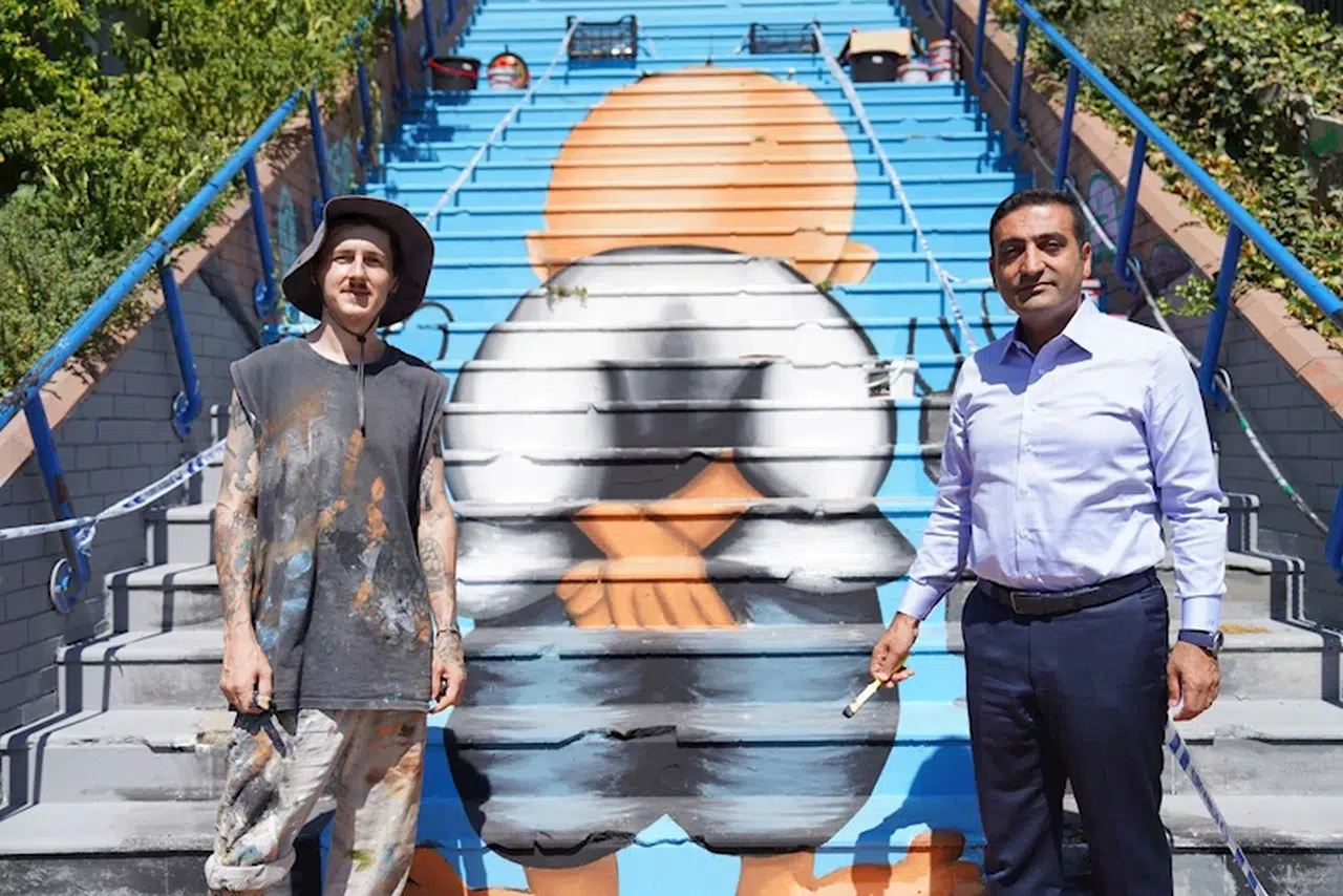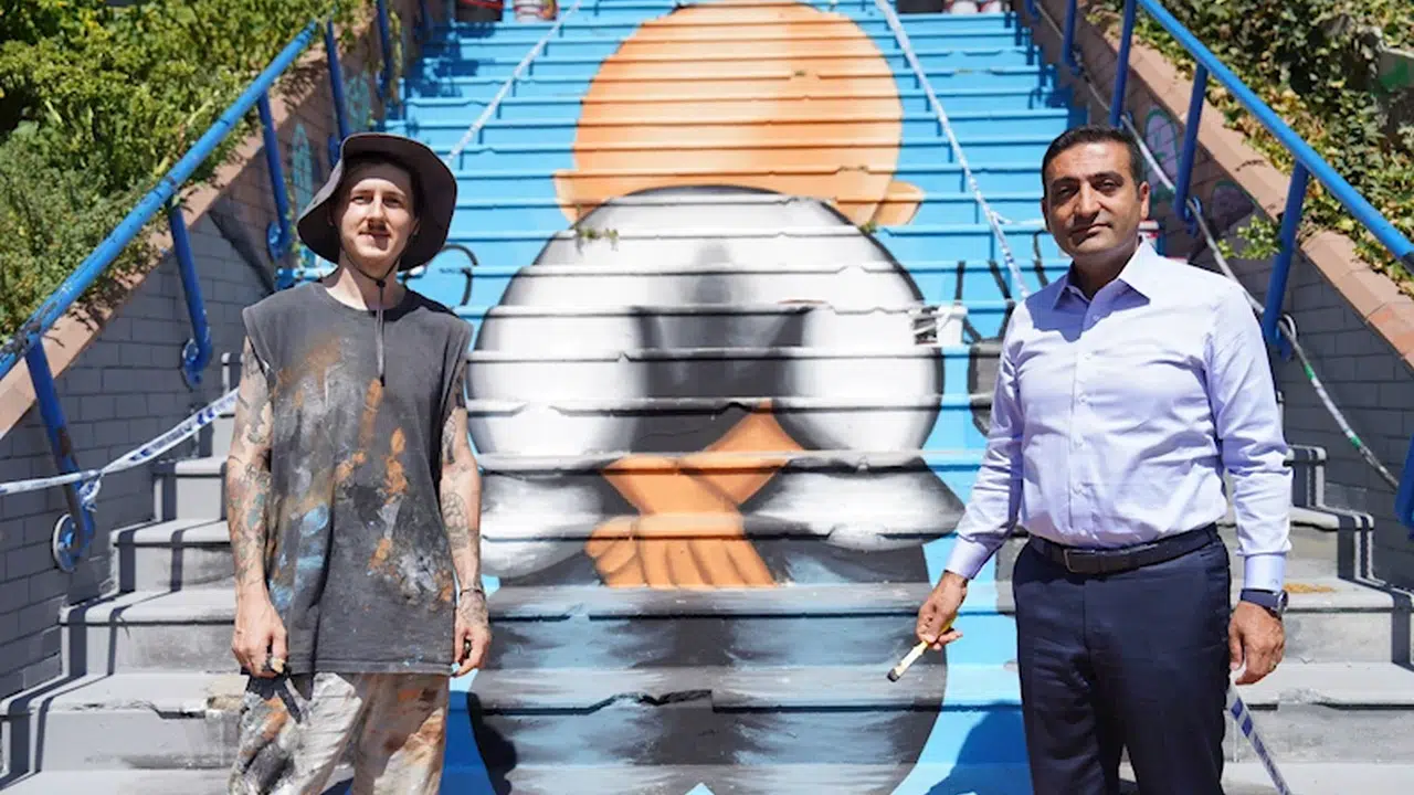 İSTANBUL, (DHA)- Beyoğlu Belediyesi, Cihangir’de Salı Pazarı Yokuşu olarak bilinen merdivenlere karikatürist Naci el-Ali'nin Hanzala karakterini resmetti. Ressam Furkan Akhan tarafından akrilik boya ile yapılan çalışma dört gündür devam ediyor. Çalışmanın kısa sürede tamamlanması planlanıyor.