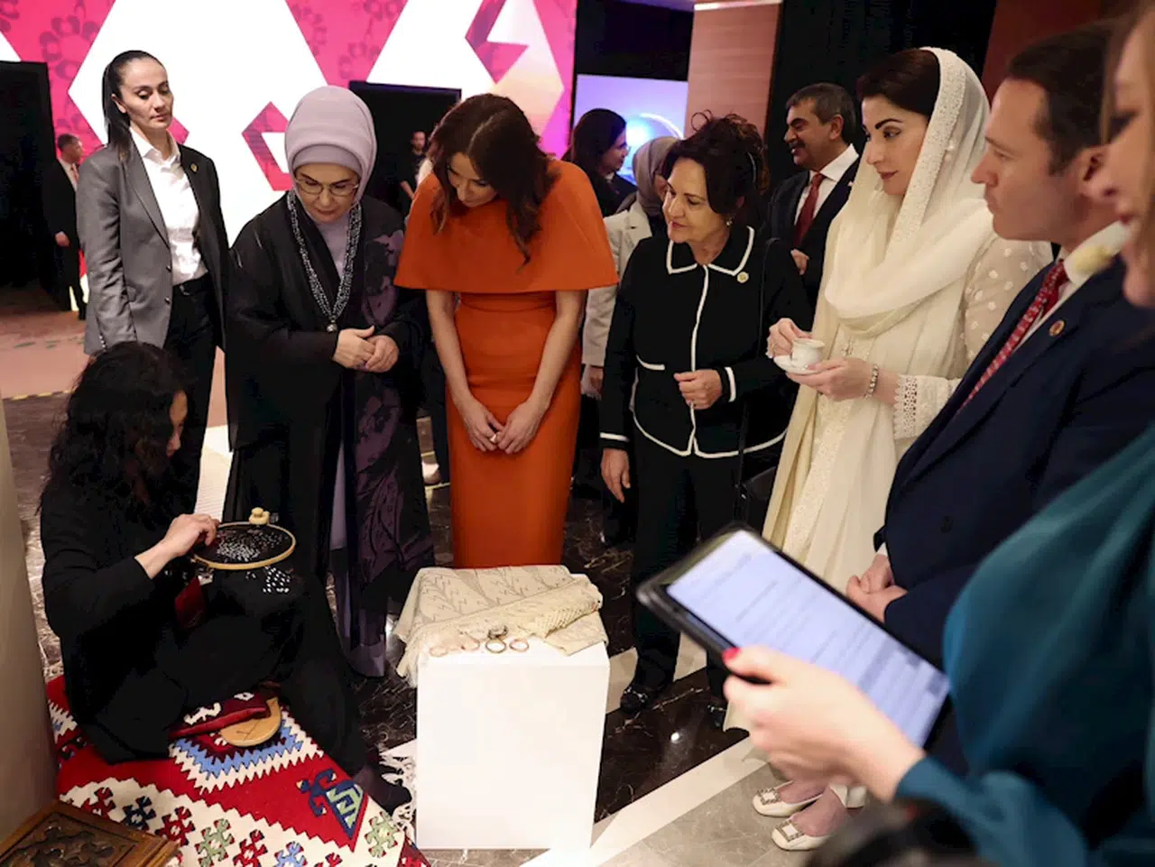 "Antalya Diplomasi Forumu'nun dostluk ikliminde, değerli lider eşleri ve uluslararası misafirlerle birlikte, kültürel mirasımızın taşıyıcısı Olgunlaşma Enstitülerimizin göz nuru eserlerini keşfetmenin heyecanını paylaştık. Her ilmekte geçmişin hikayesi, her desenin ardında Anadolu'nun sesi var. Kadim mirasımızın evrensel bir dille harmanlandığı bu anlamlı buluşmada, bizi biz yapan değerlerimizi tanıtmak büyük bir mutluluktu. Türkiye olarak, kültürün, saygının ve sevginin diliyle farklı coğrafyalardan gelen gönüller arasında köprüler kurmaya devam etmeyi temenni ediyorum."