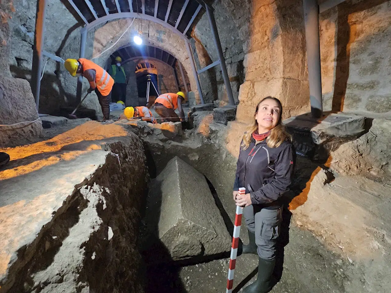 Orta Çağ dönemindeki tsunami sonrasında alüvyonlarla kaplanmış olan kilisenin eski dönemine ait zeminde ortaya çıkan lahitle alakalı bilgi veren Doç. Dr. Ebru Fatma Fındık, tsunami sonrası oluşan çok kumlu ve çakıllı tabakayı kaldırdıklarında, altında lahitle karşılaştıklarını açıkladı. Yakında bu konuyla ilişkili jeologların da geleceklerini, bunu araştıracakları ve inceleyeceklerini ifade eden Doç. Dr. Fındık, “Çünkü aynı zamanda buranın tarihinde seller ve tsunamiler olmuş, biliyoruz. Dolayısıyla bu çok önemli bir veri, lahdin de olasılıkla henüz bilmediğimiz bir tarihte bir sel ya da tsunaminin getirdiği bu çakıl ve kum tabakasıyla kaplandığını, o nedenle günümüze sağlam bir şekilde ulaşabildiğini tahmin ediyoruz" diye konuştu.